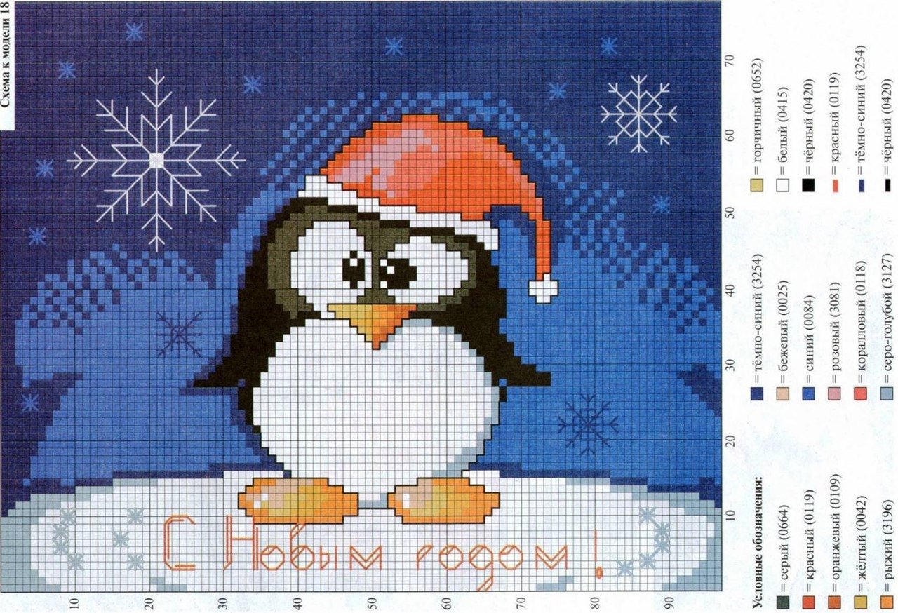 Новогодние пингвины вышивка крестом схемы