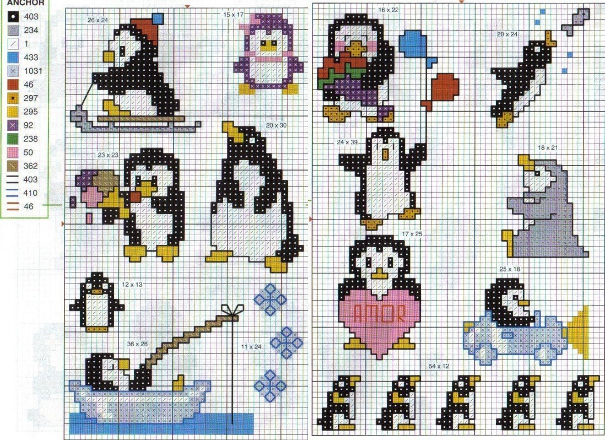 Вышивка крестом пингвины схема