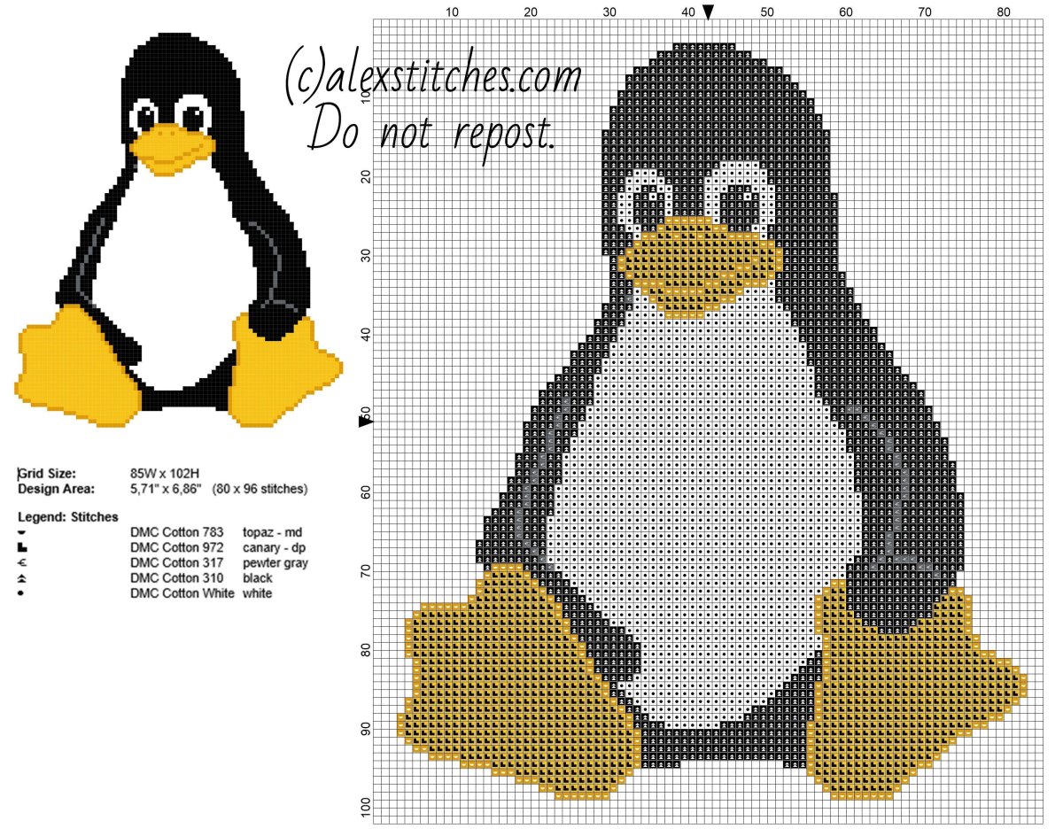 Эскиз пингвина для вышивки
