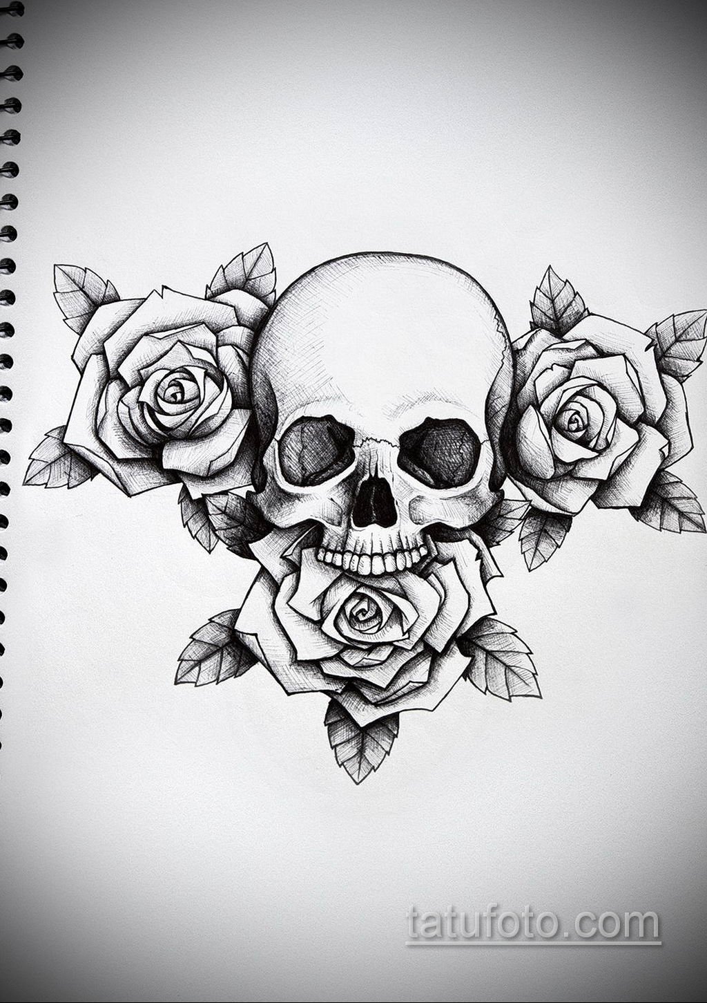 Эскизы тату череп с розой