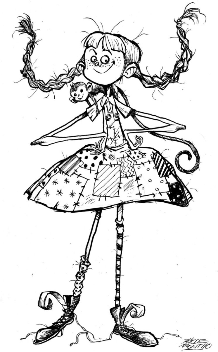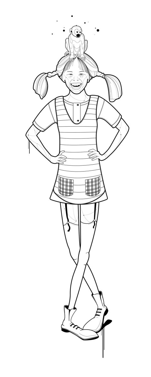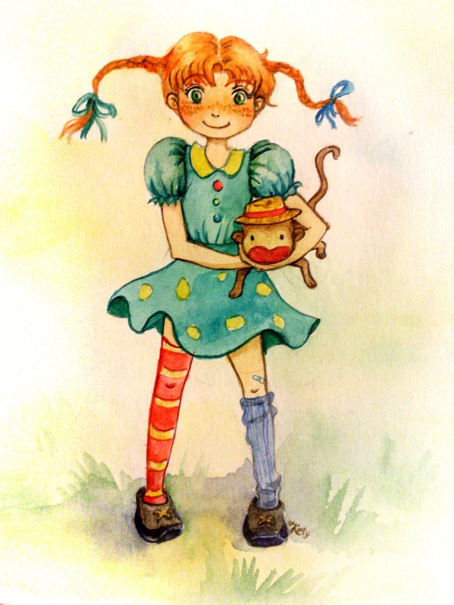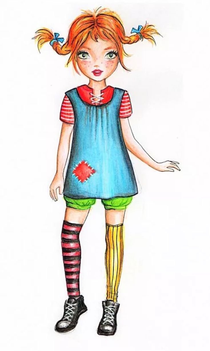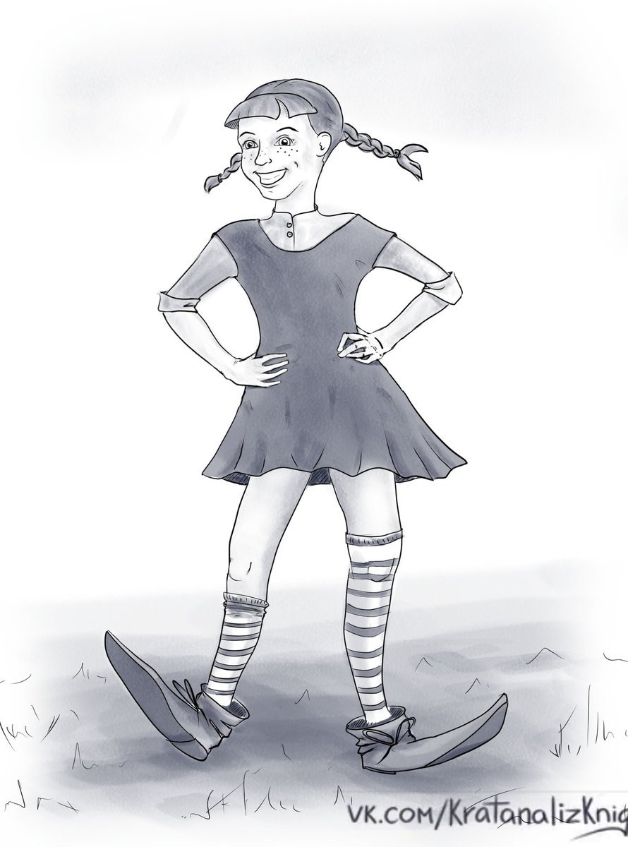 Пеппи длинный чулок на шпагате рисунок карандашом