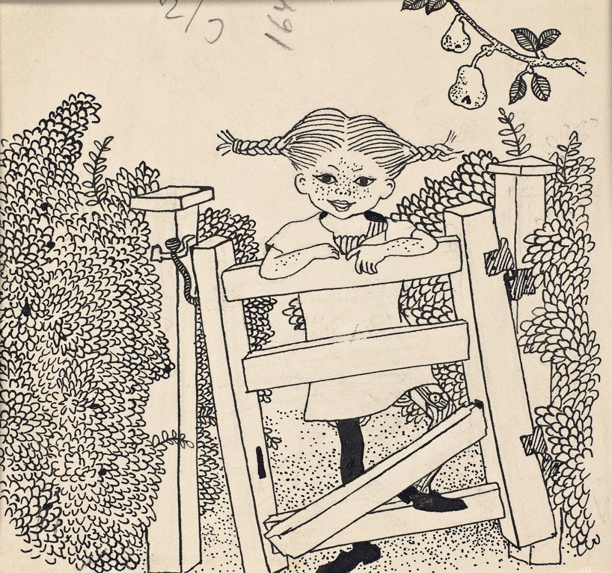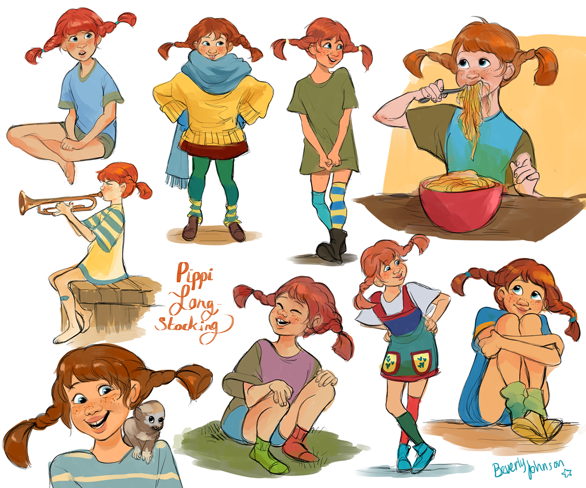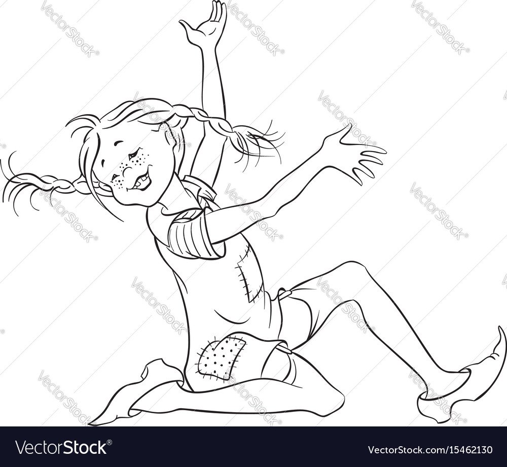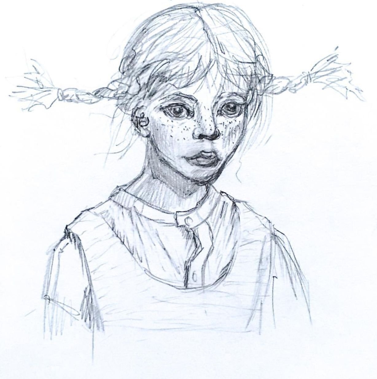 Пеппи длинный чулок на шпагате рисунок карандашом
