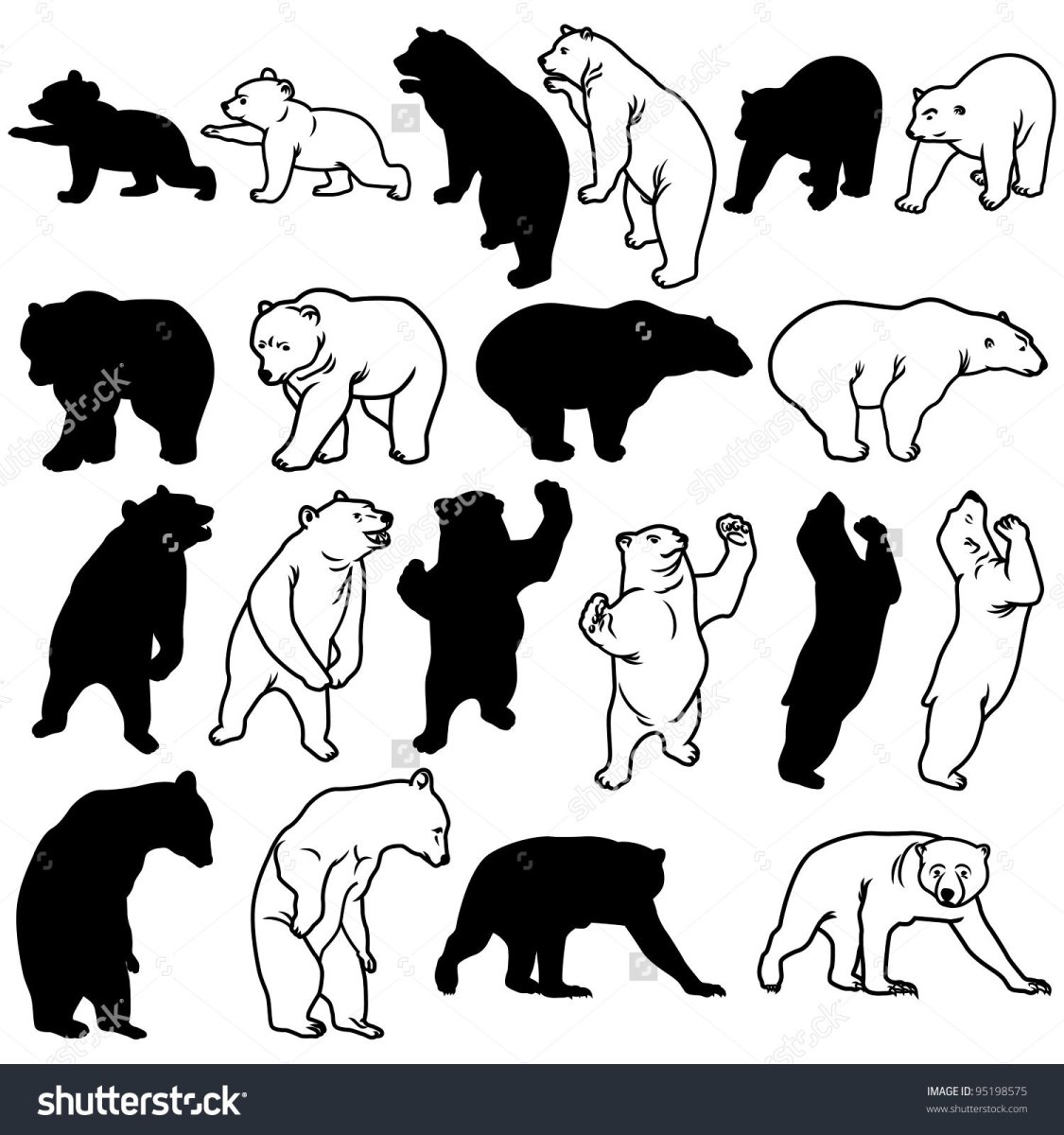 Силуэты животных медведь
