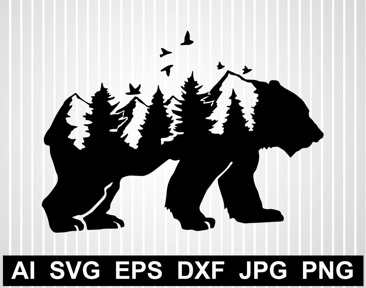 Медведь с горами силуэт