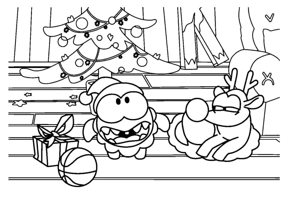 Ам Ням раскраска новогодний