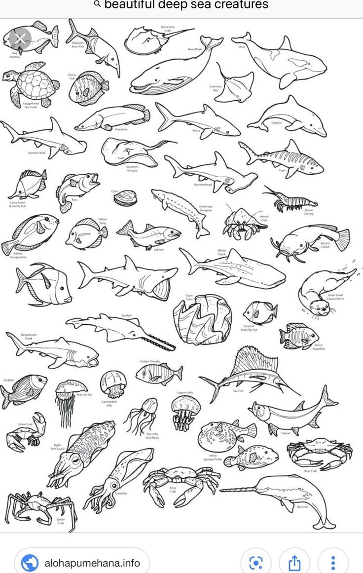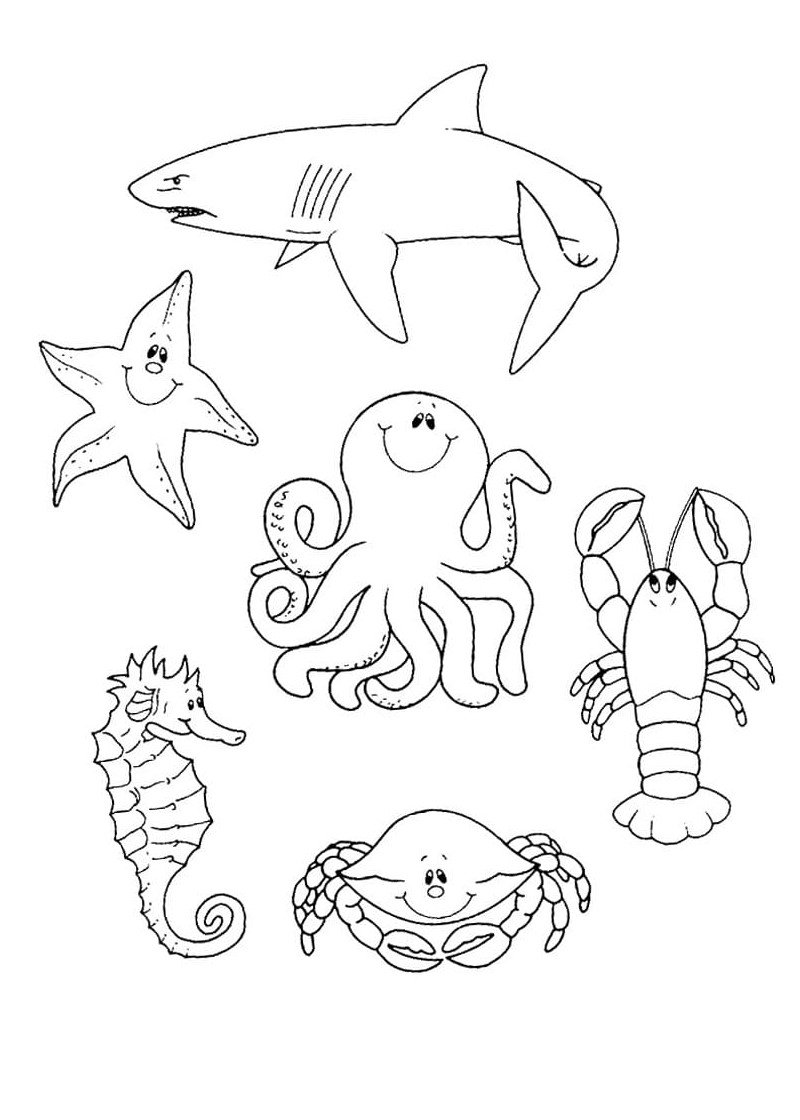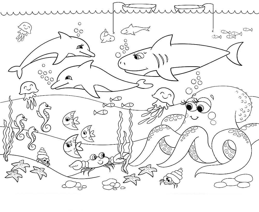 Раскраски морские обитатели морей и океанов для детей