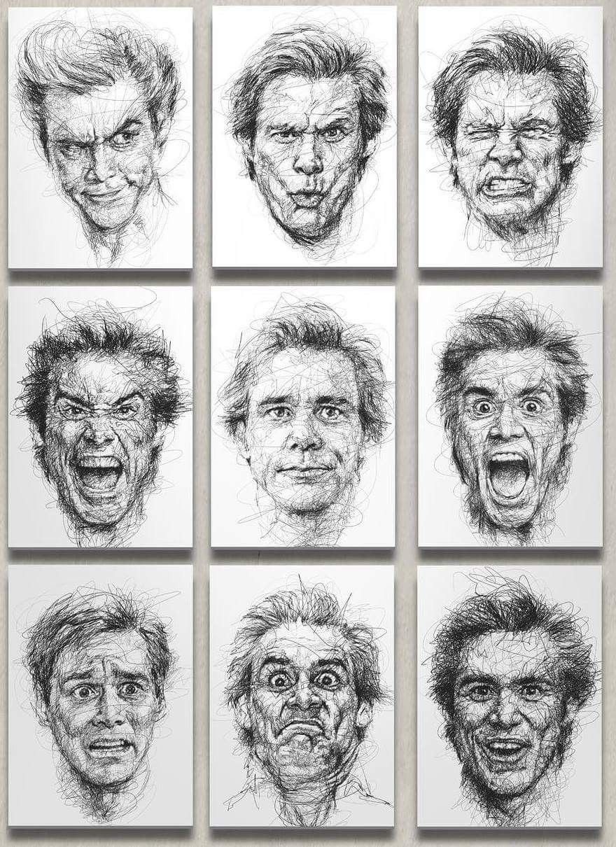 Много разных лиц нарисованных