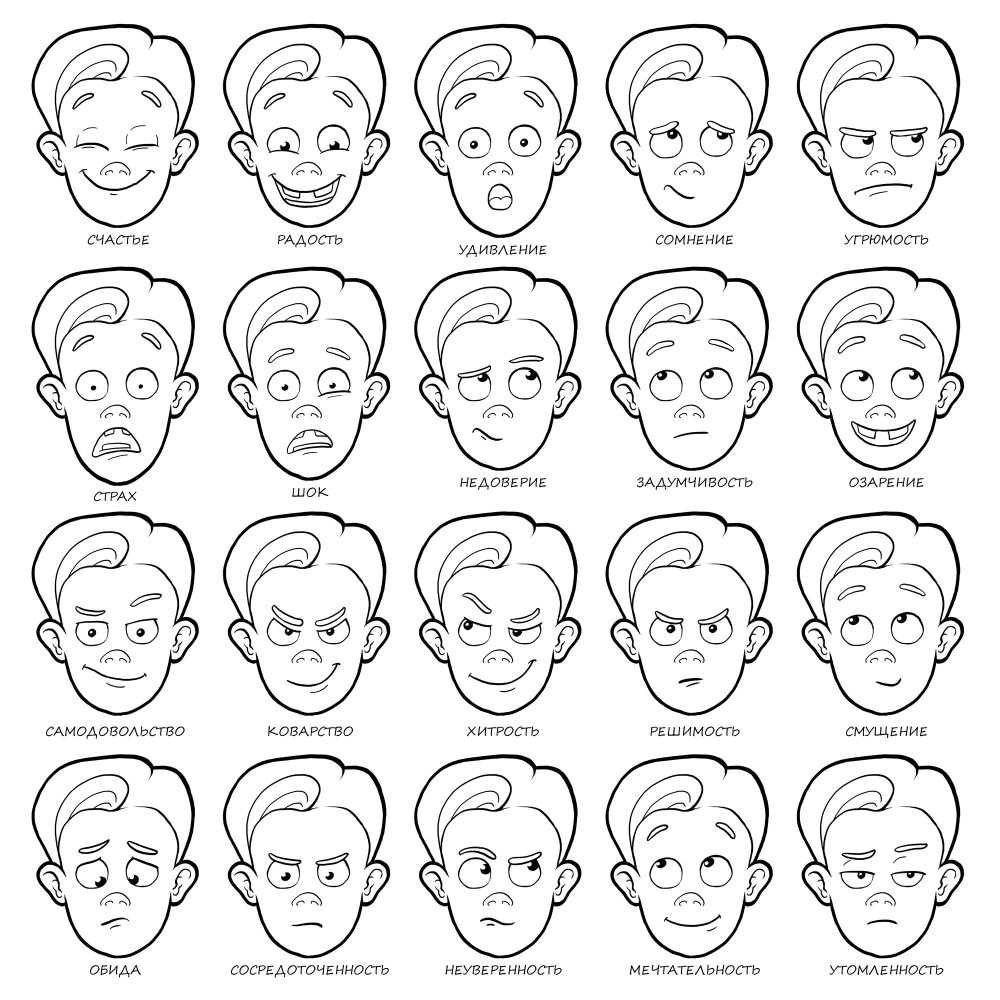 Выражения лица для рисования мужские
