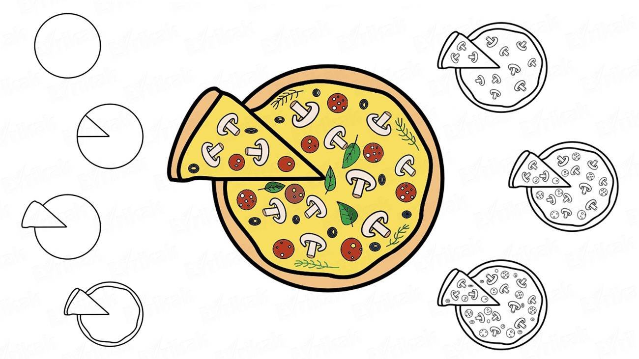 Как красиво нарисовать пиццу пошагово