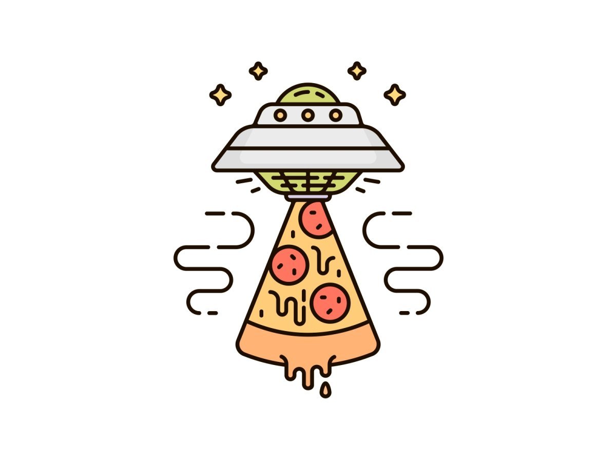 Эскиз летающей тарелки и пицца