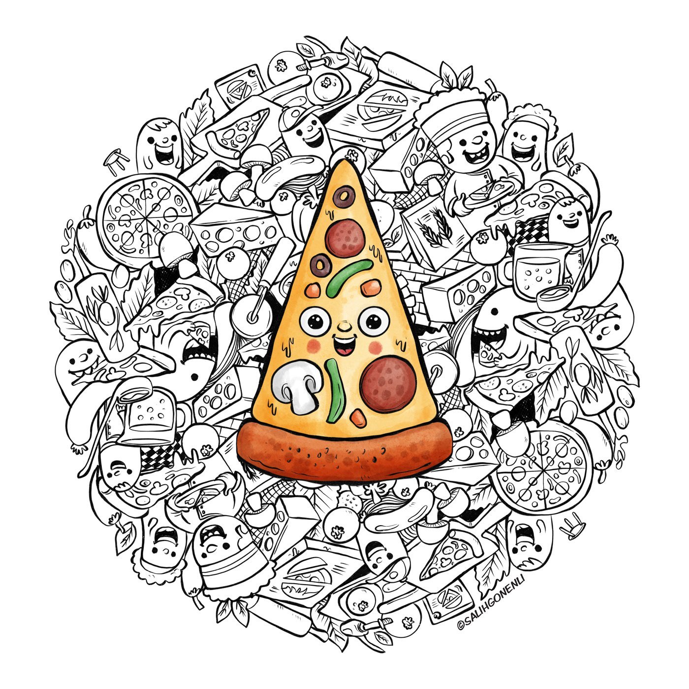 Пицца для рисования черно белая