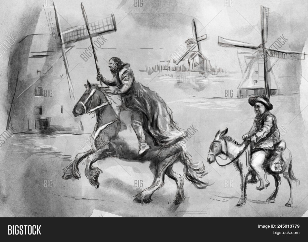 Дон Кихот и Санчо Панса иллюстрация к роману