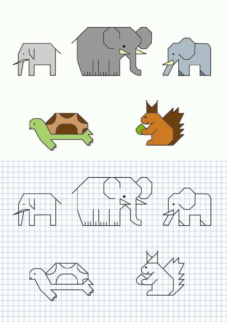 Рисунки по клеточкам животных