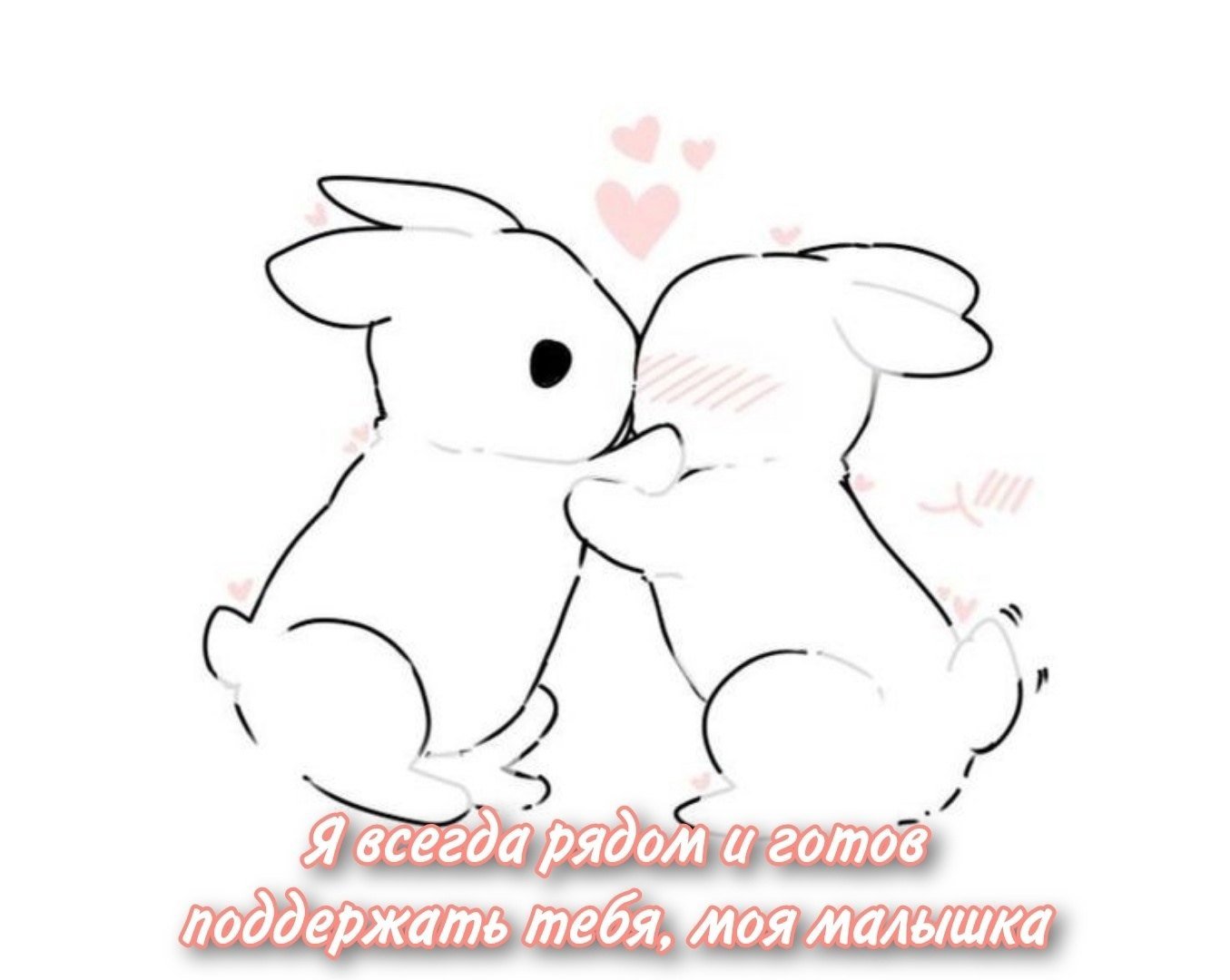 Котик и зайчик обнимаются рисунок карандашом