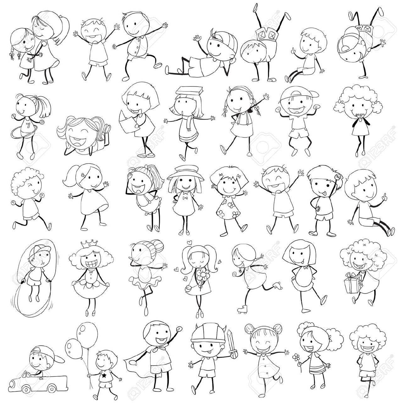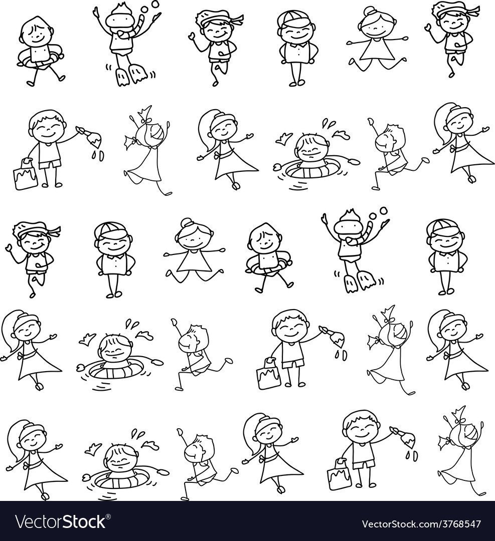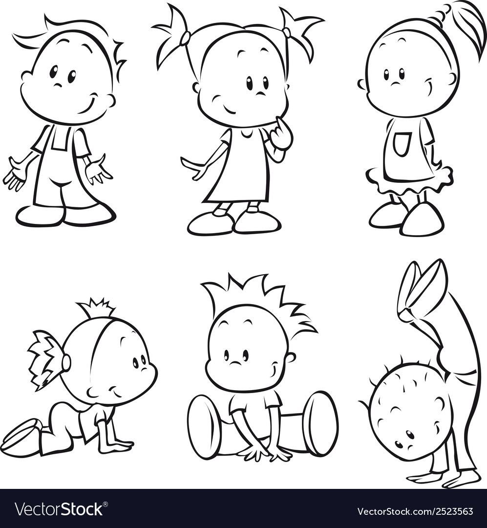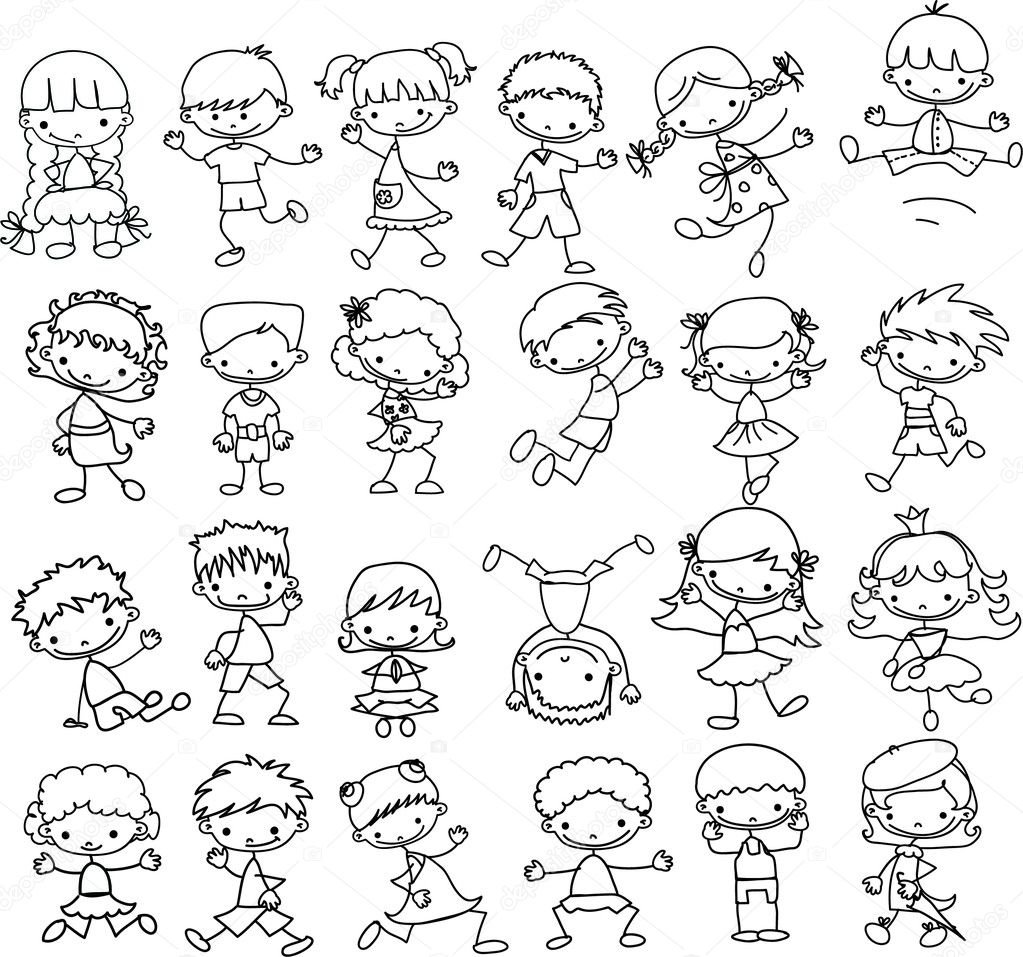 Дети рисунок вектор чб