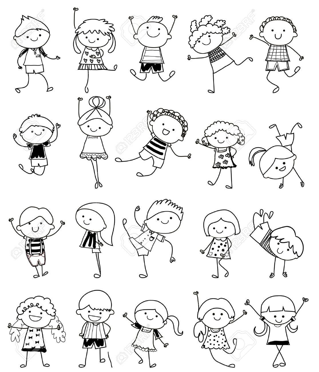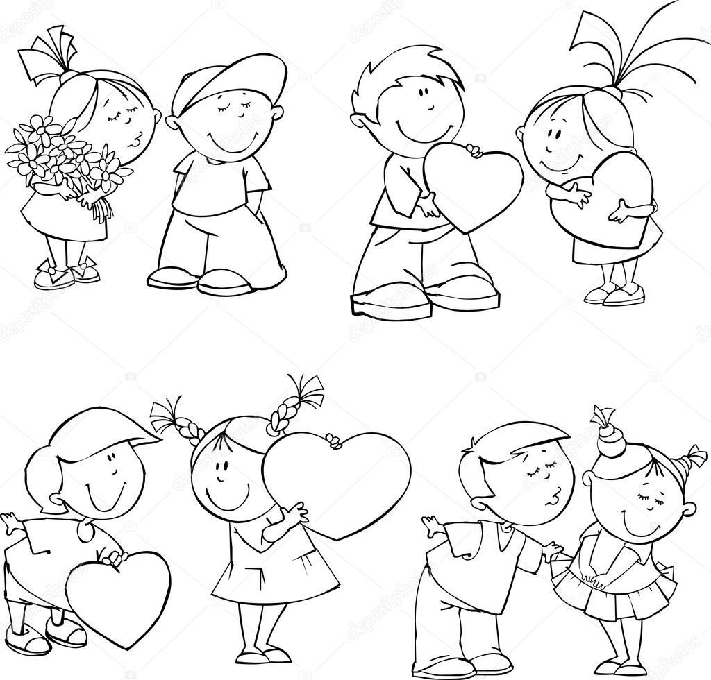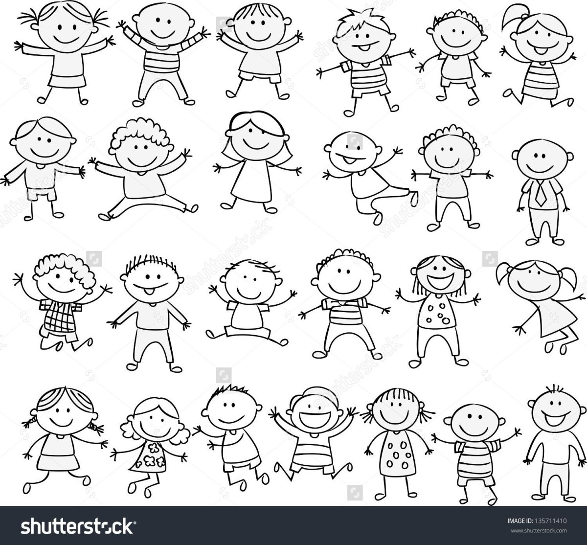Дети рисунок вектор чб