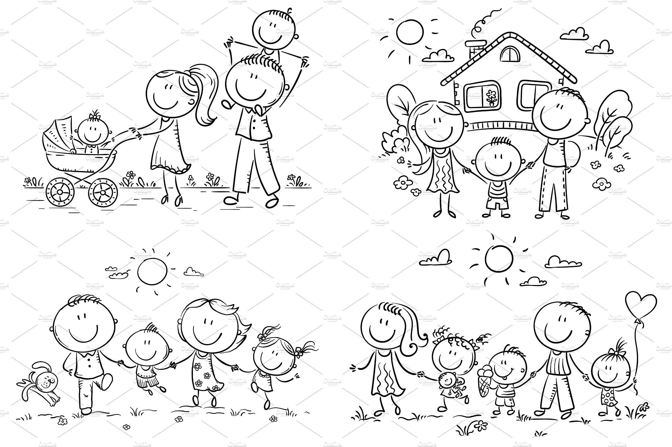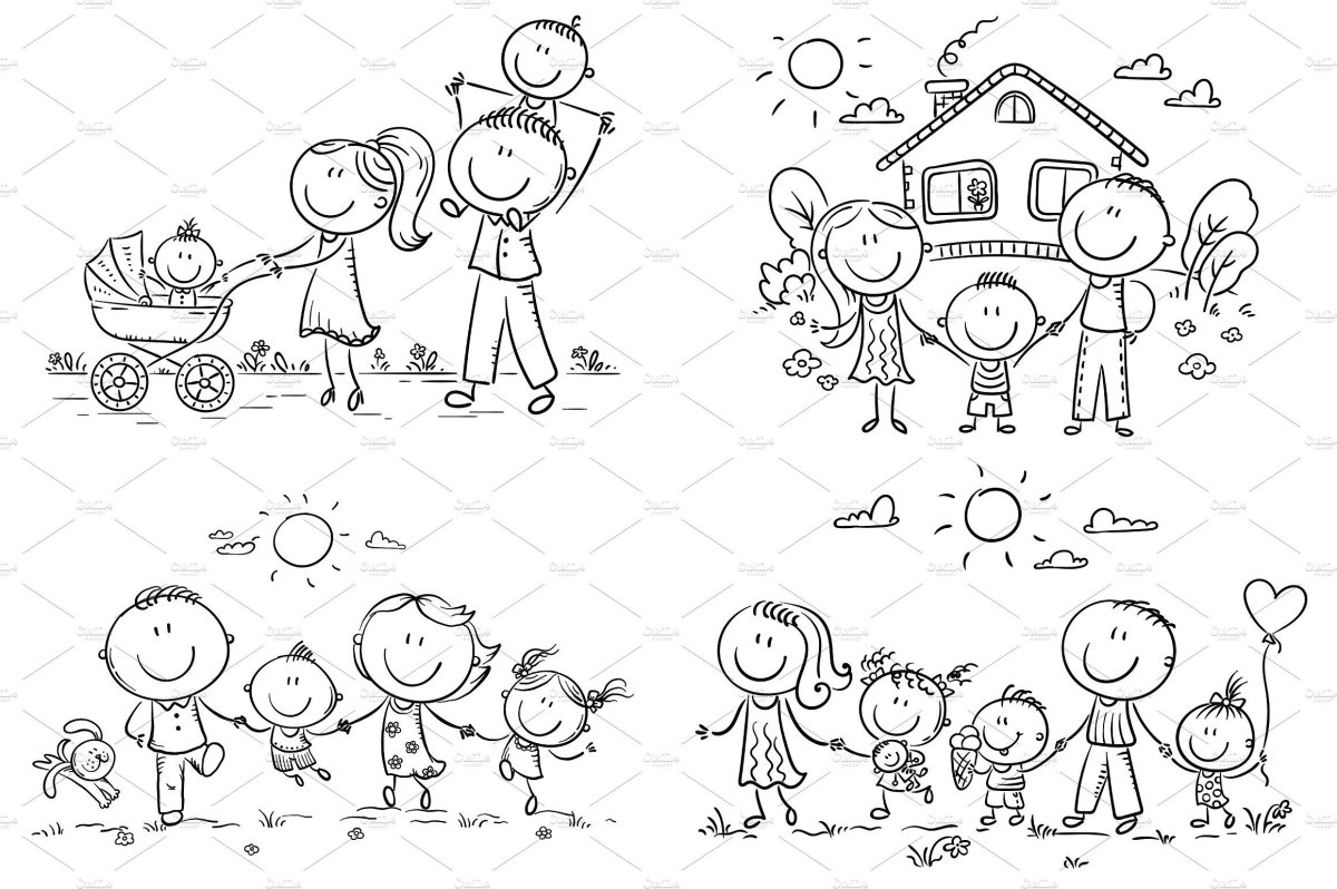 Контуры семьи для рисования