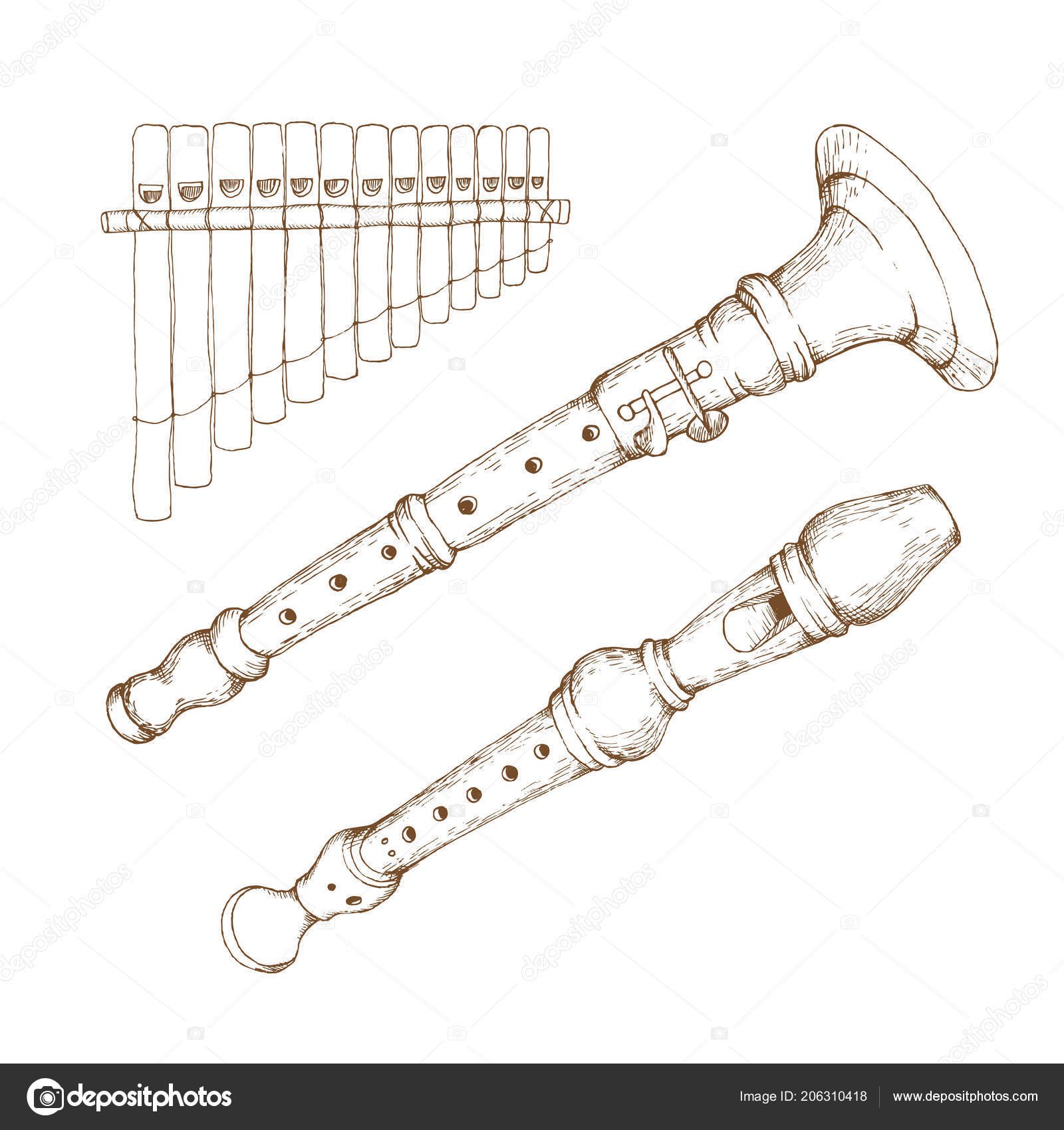 Флейта музыкальный инструмент рисунок для детей разноцветный