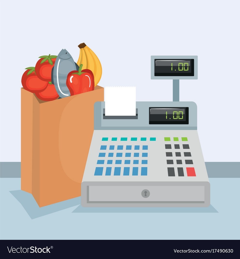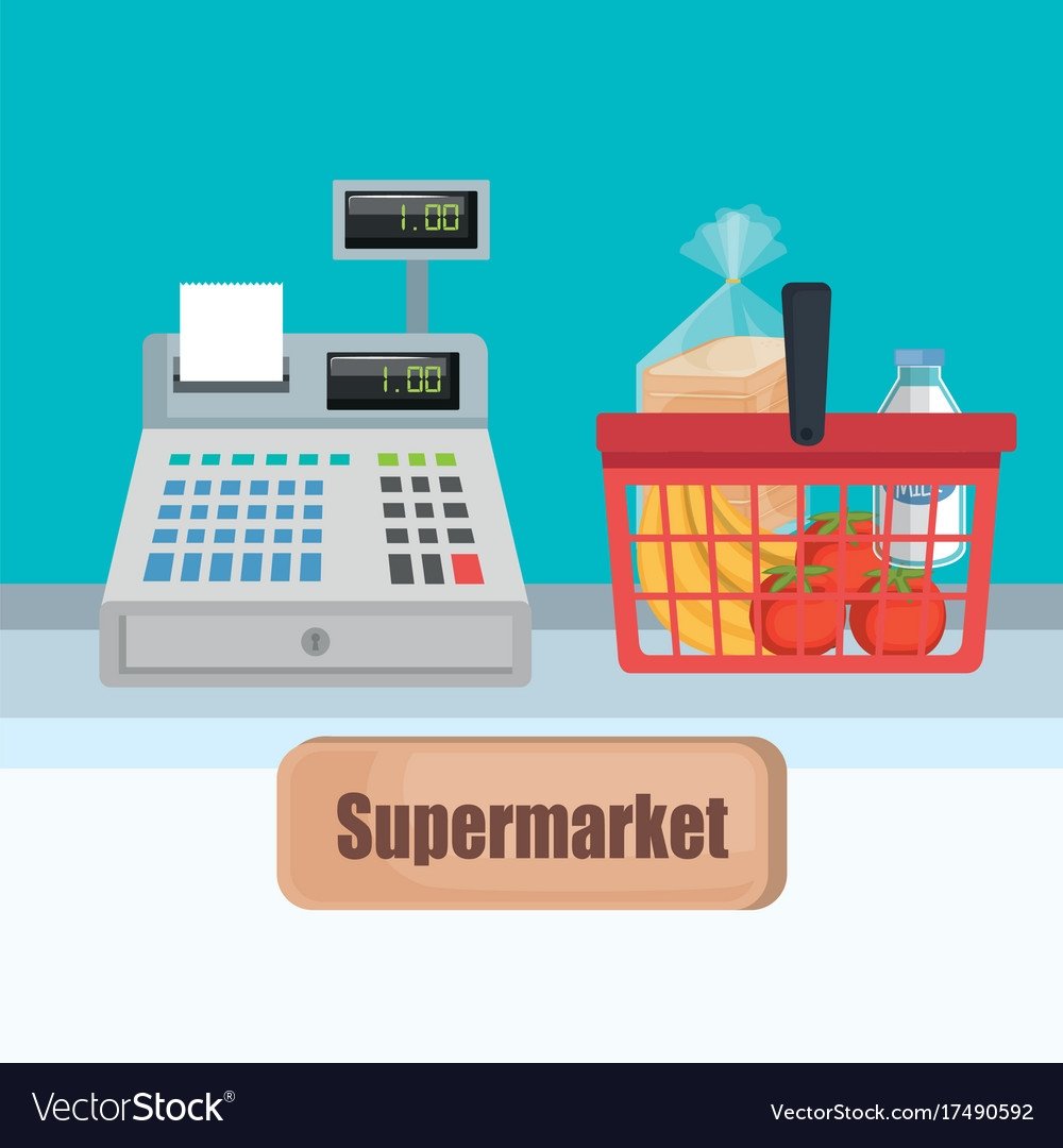 Иллюстрация касса в продуктовом магазине