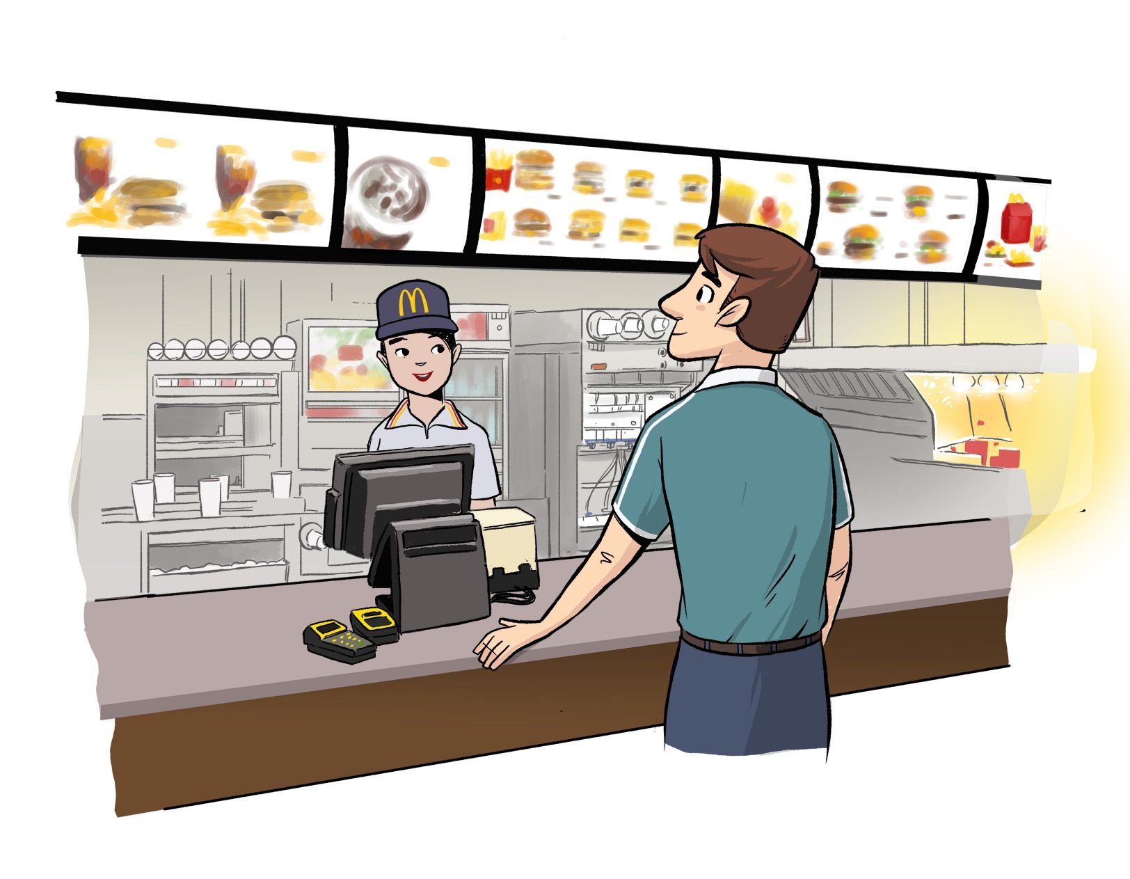 Кассир в кафе рисунок