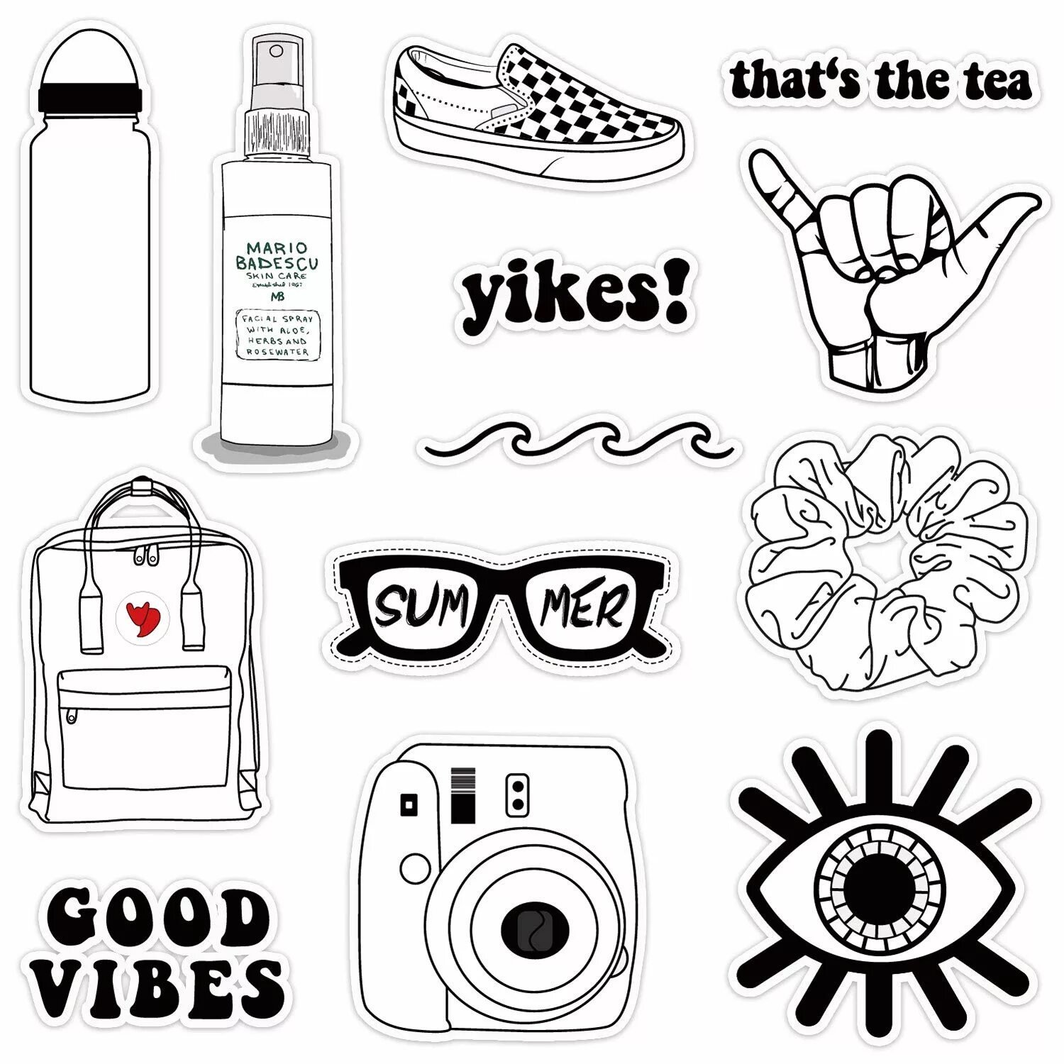 Черно белые наклейки для распечатки Эстетика