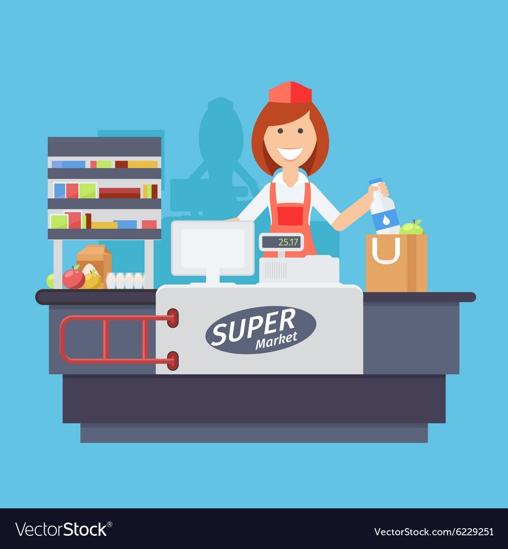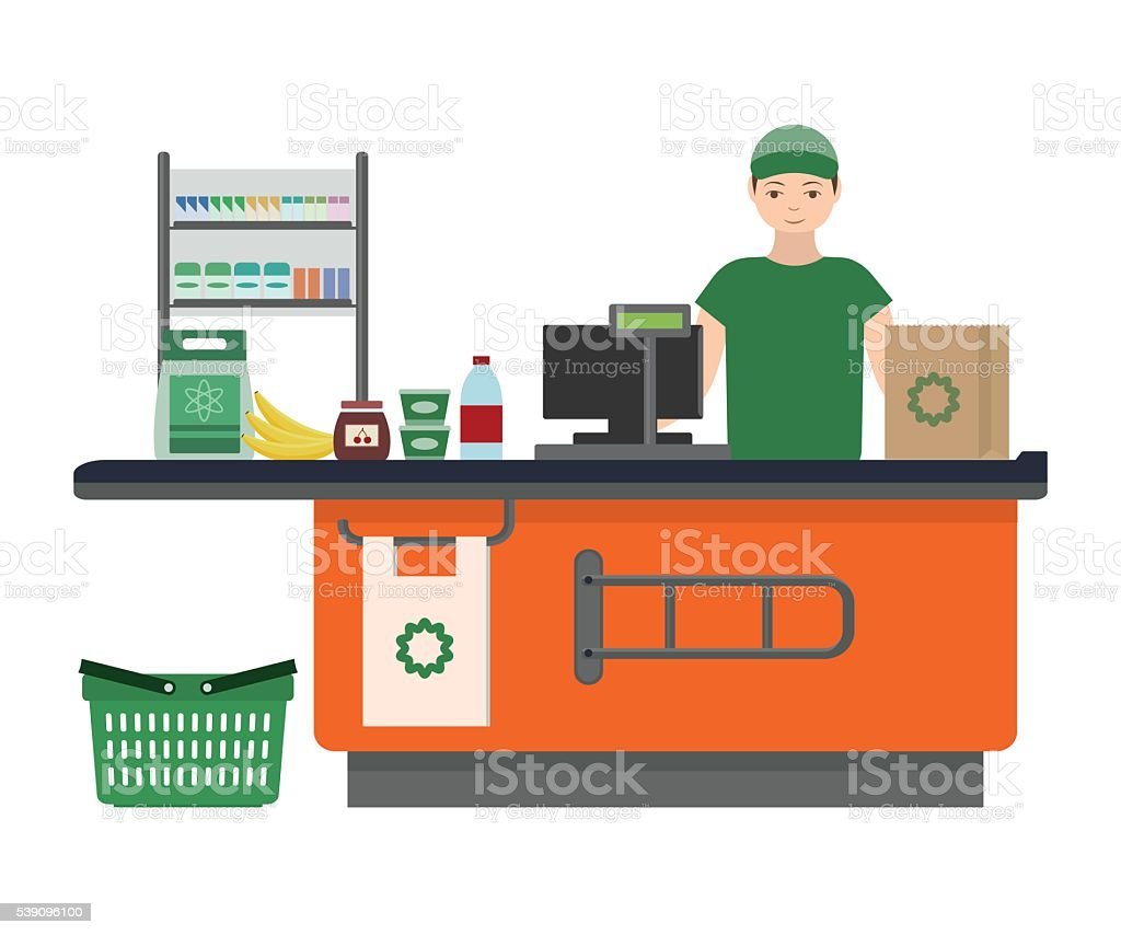 Иллюстрации кассир в магазине