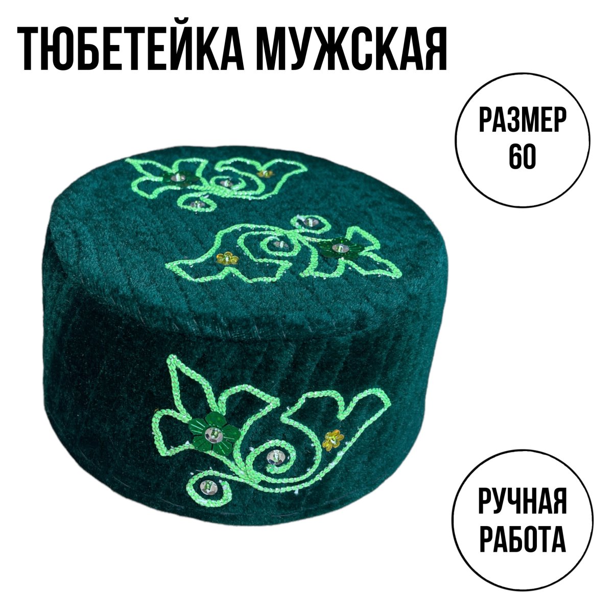 Тюбетейка Татарская зеленая Жасмин