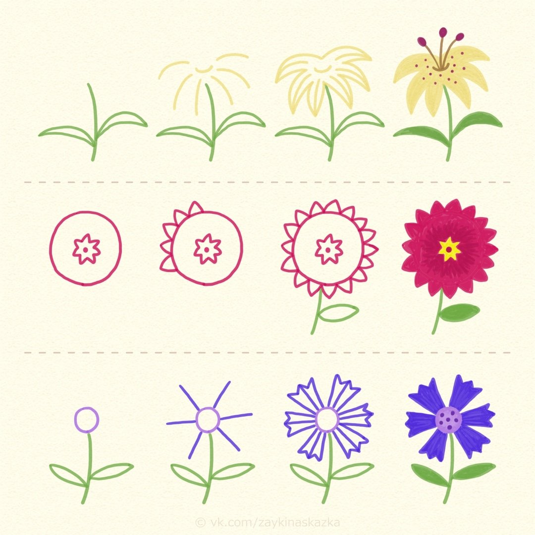 Схемы рисования цветов