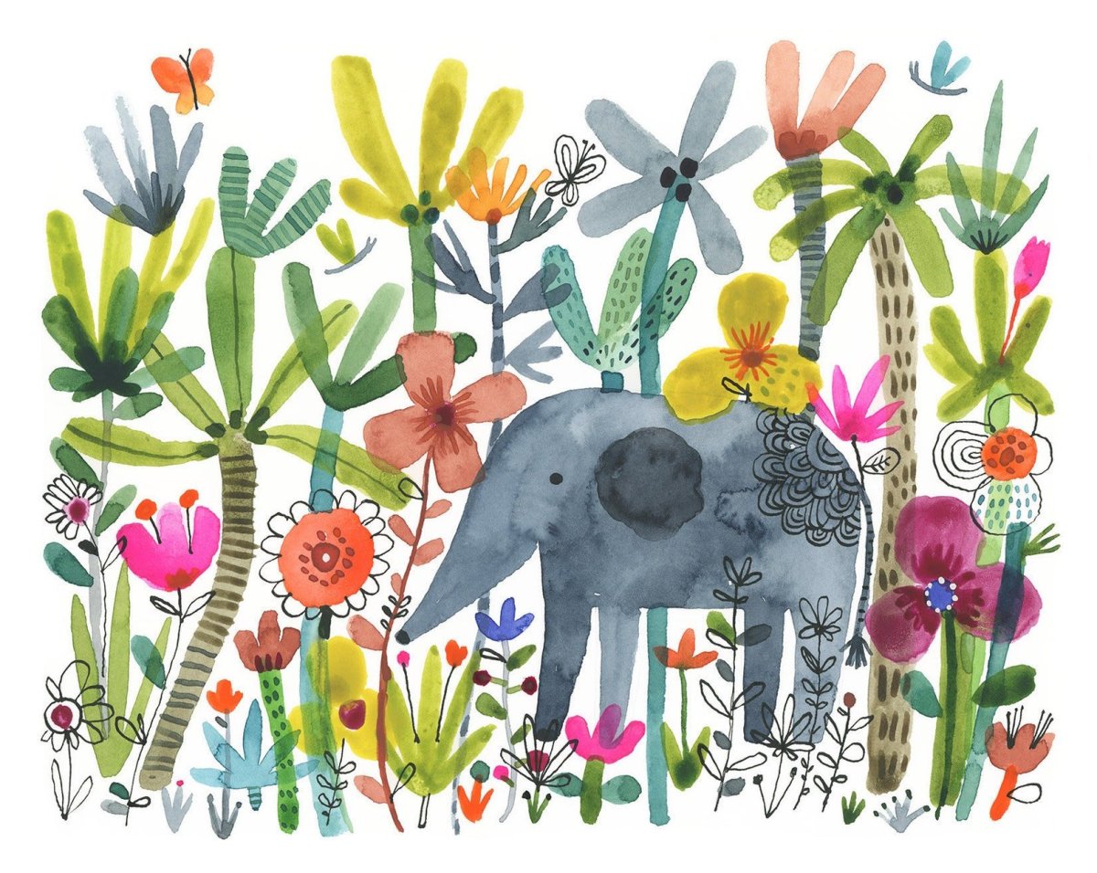 Слон лето цветы рисунок