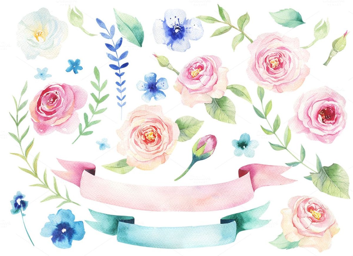 Набор цветов вектор акварель