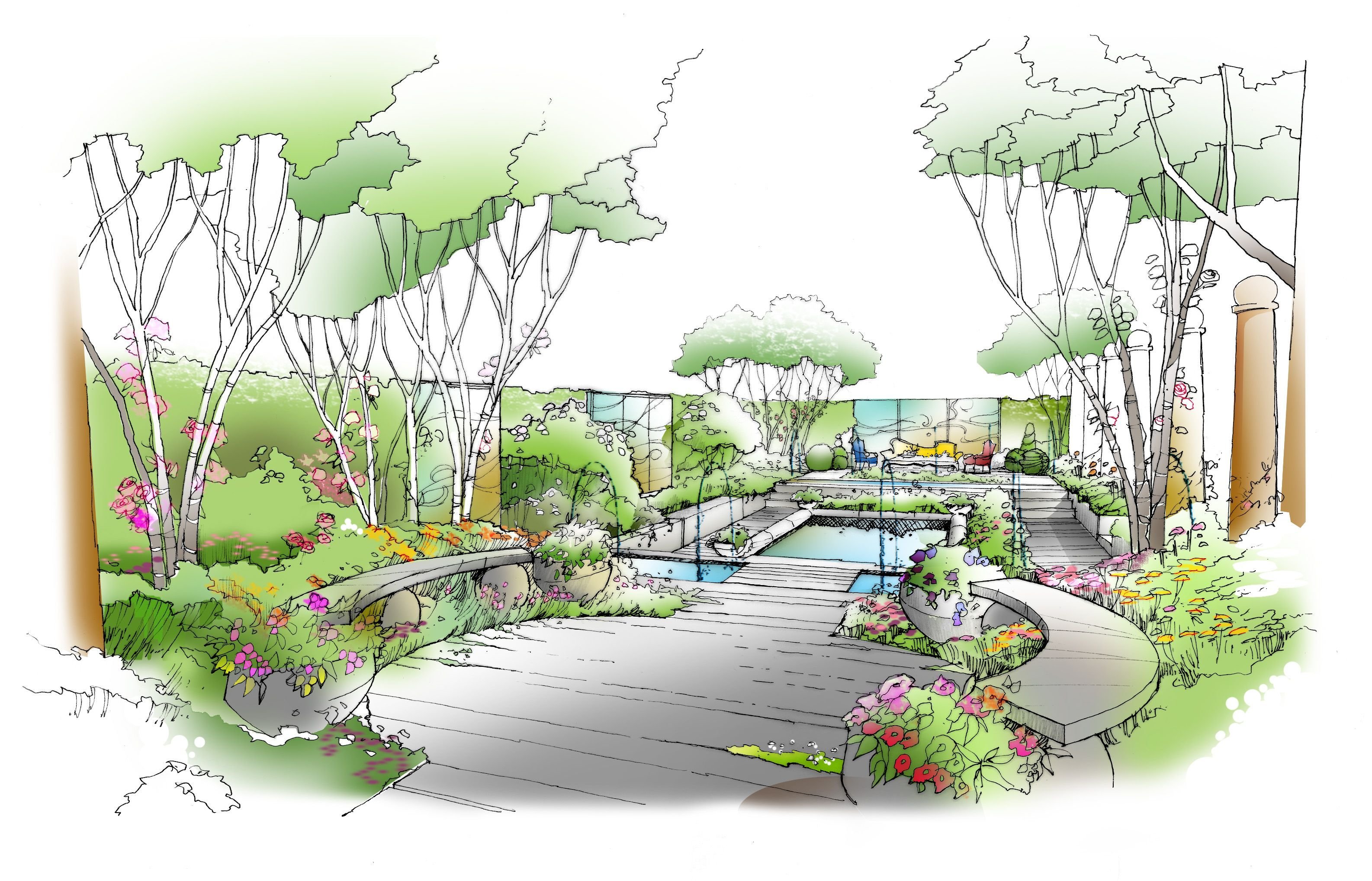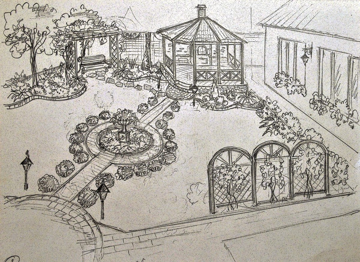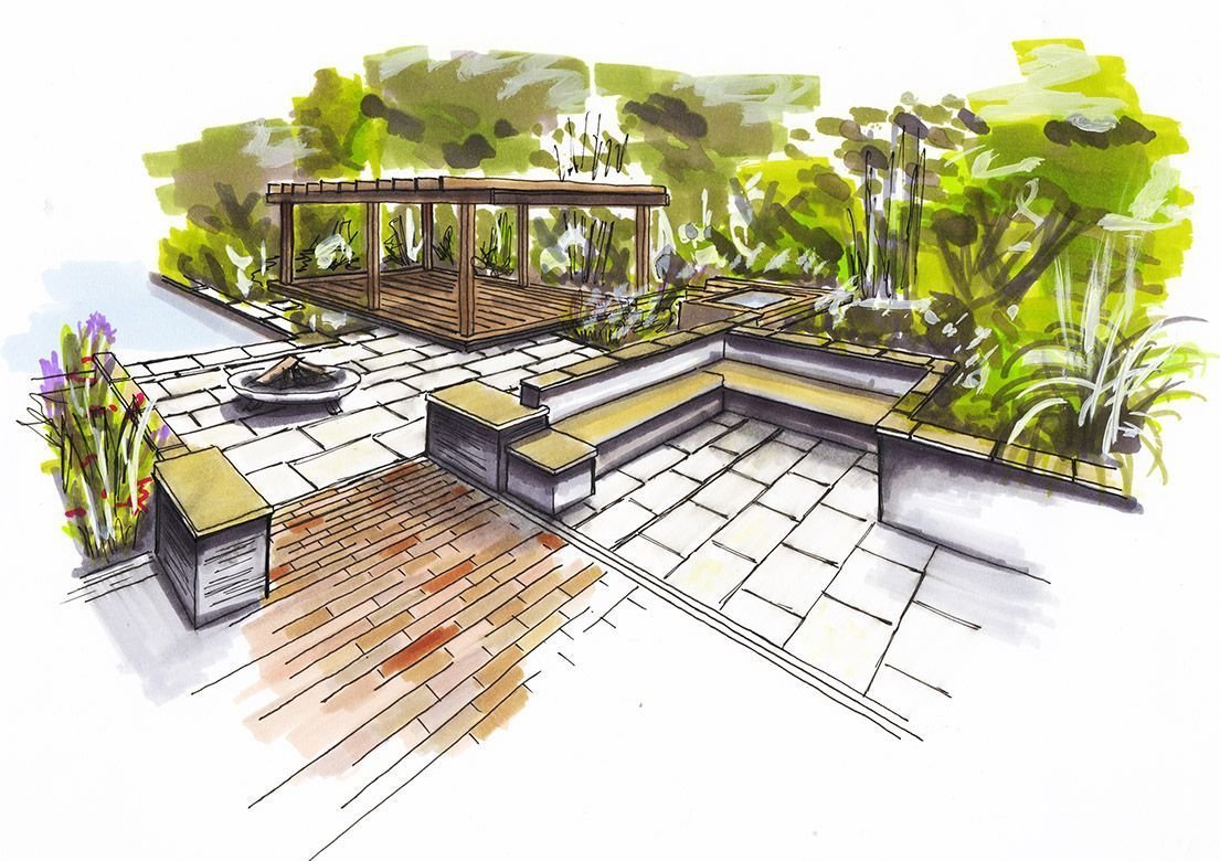 Скетч ландшафтный дизайн