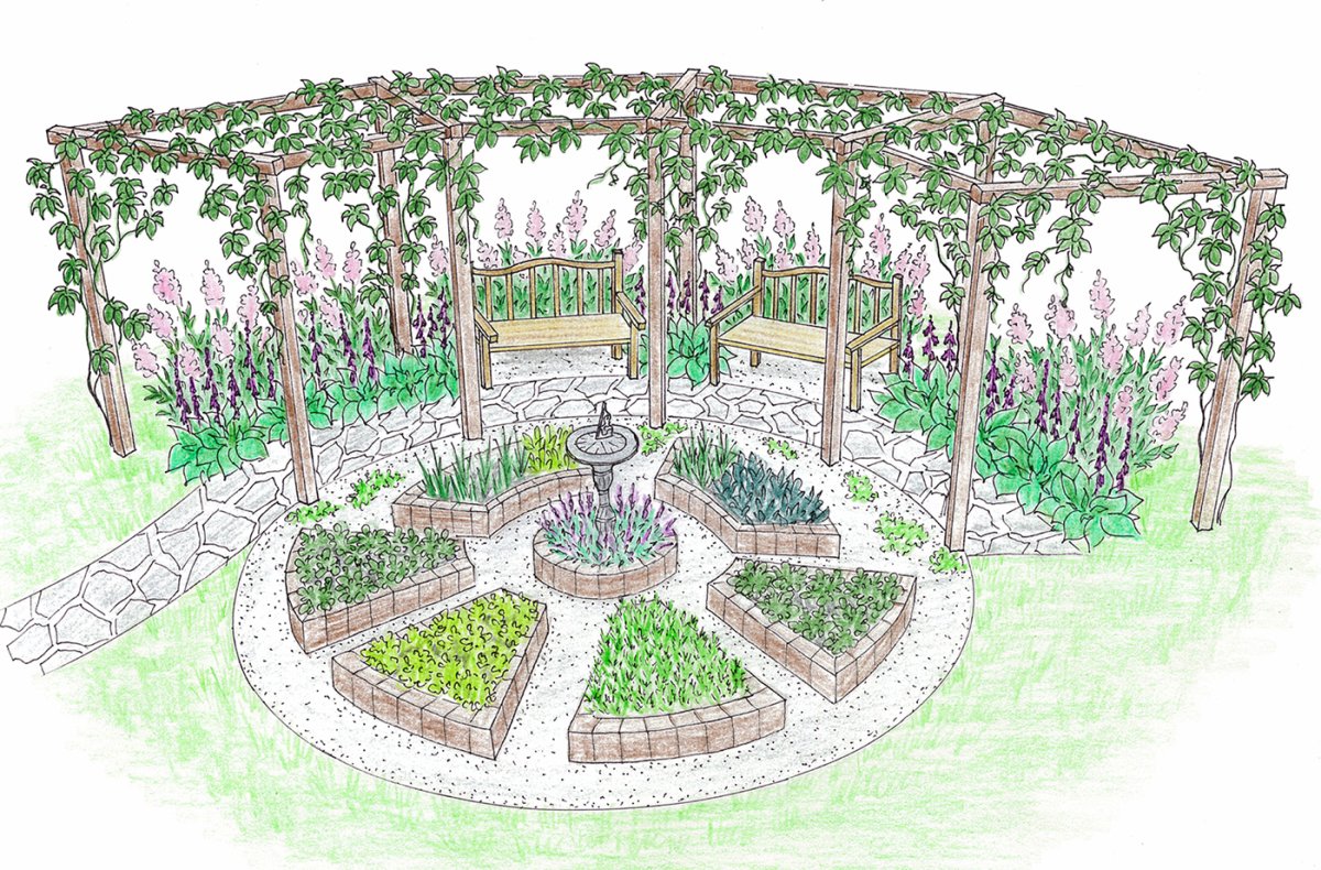 Эскиз сада в сельском стиле