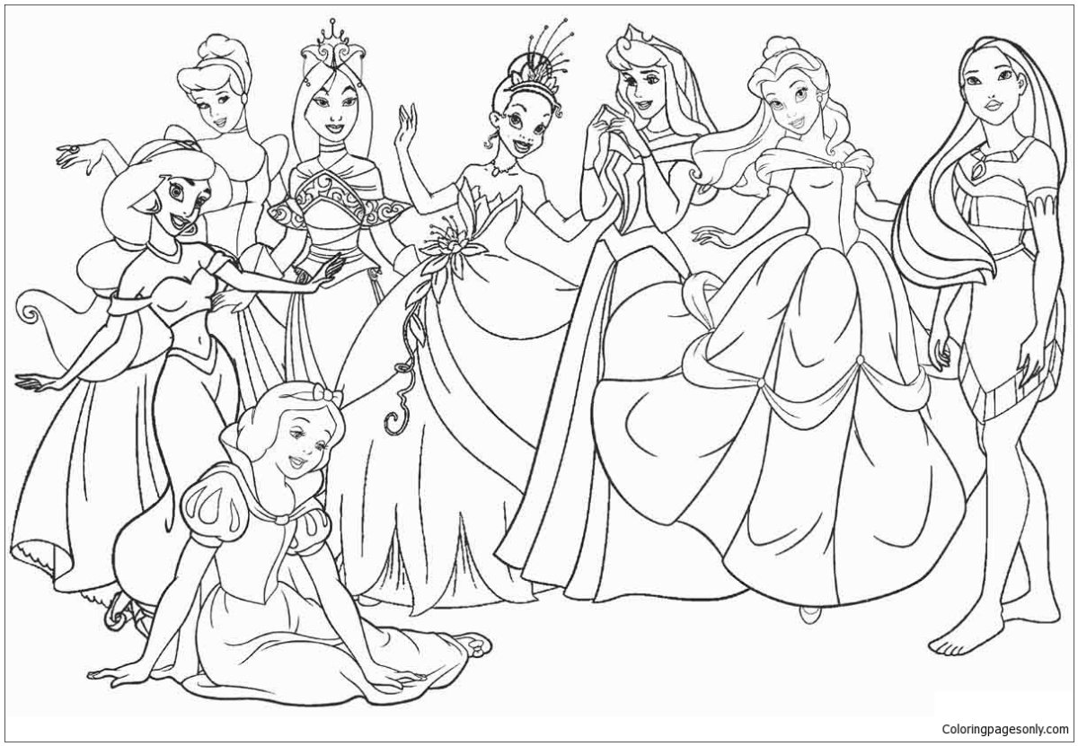 Принцесса с канала Дисней раскраска фиолетовое платье