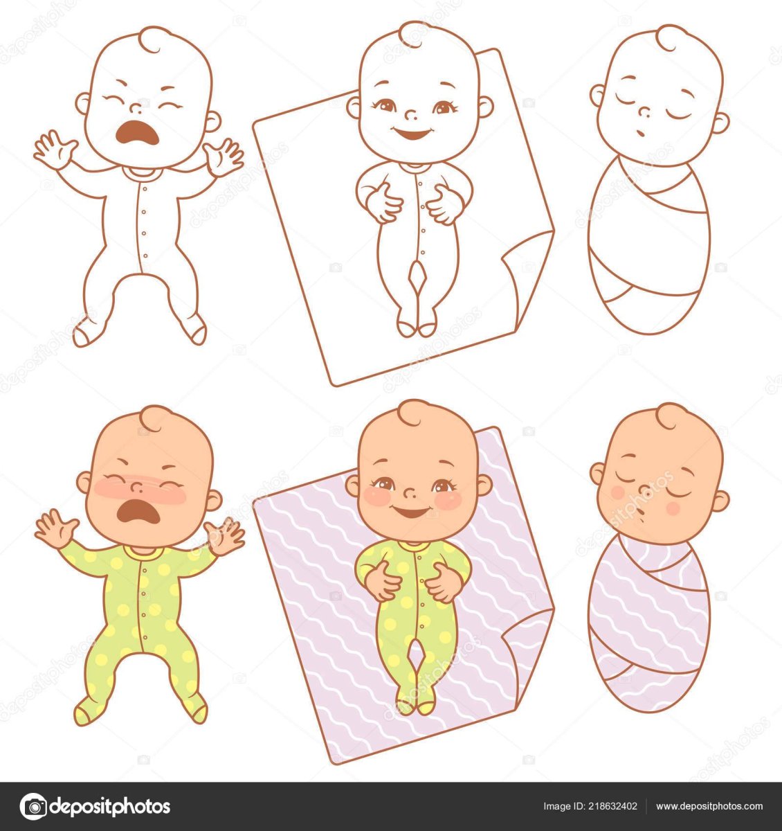 Срисовать новорожденного в пеленке