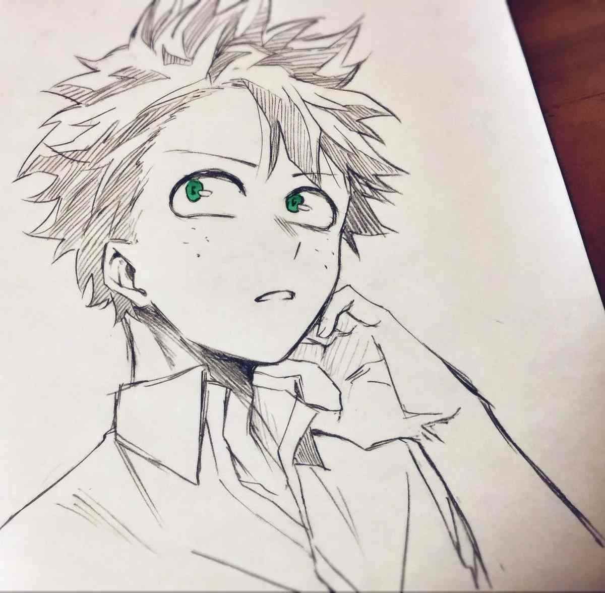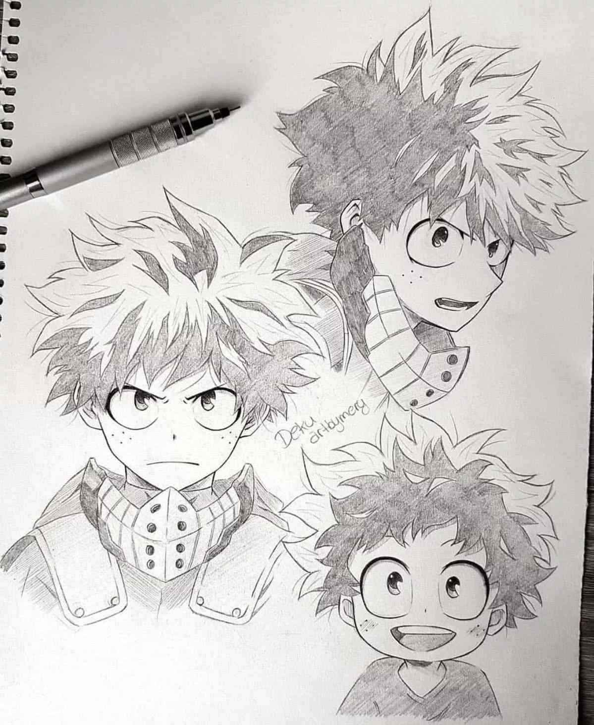 Аниме карандашом Мидория