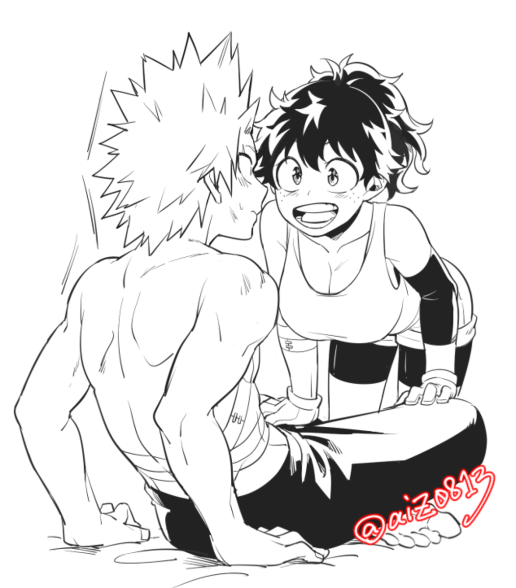 Мидория и Бакуго чб