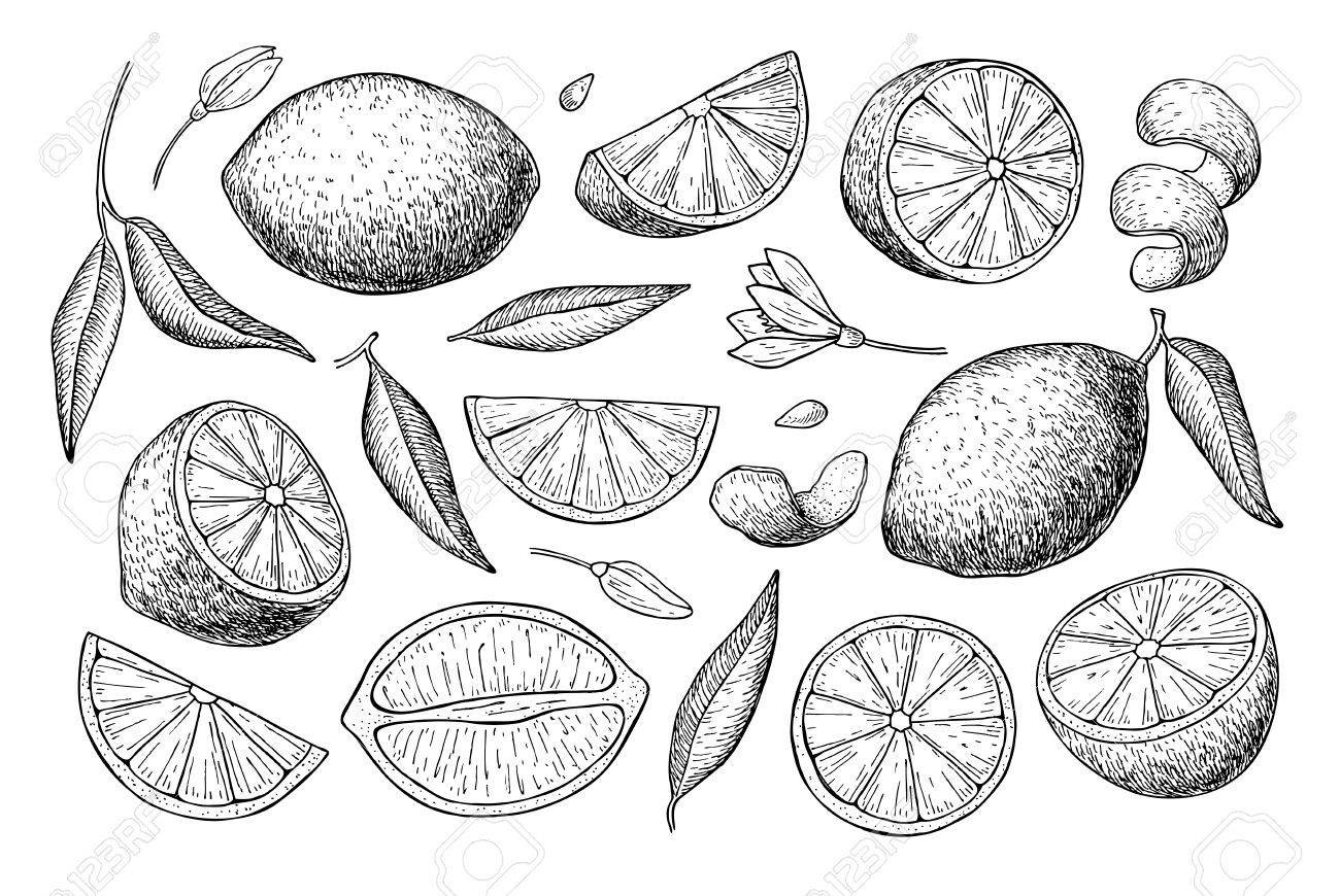 Скетч разрезанный лимон