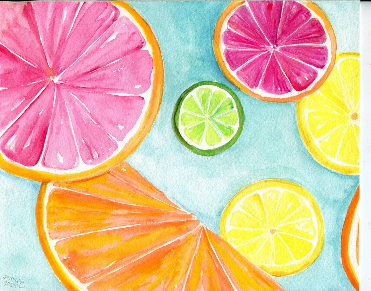 Цитрусы гуашью