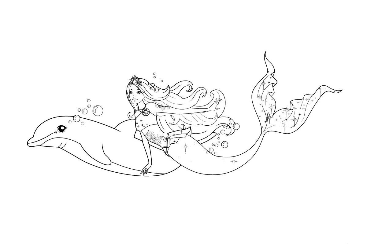 Раскраска для девочек Барби Русалка Дельфин