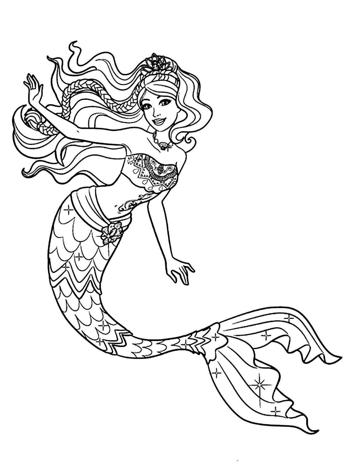 Раскраска для девочек Барби Русалка