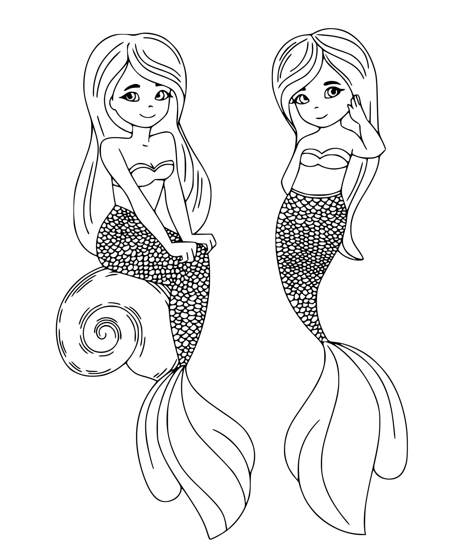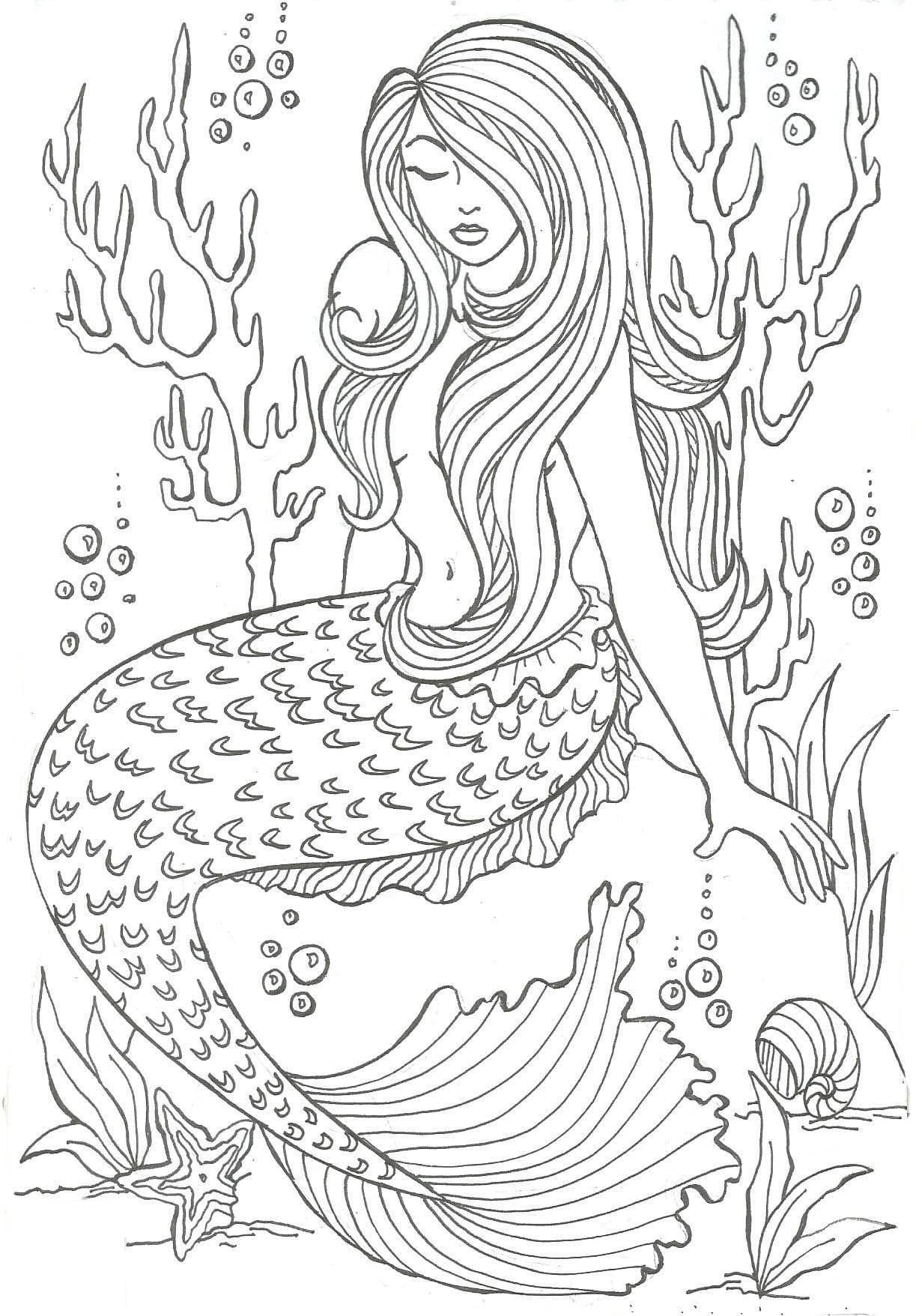 Раскраски для девочек с длинными волосами русалки