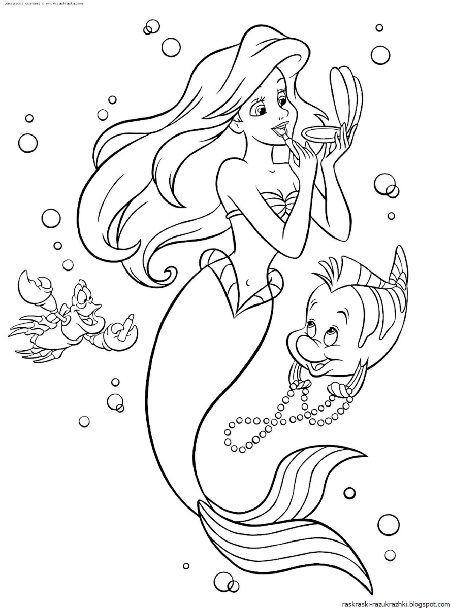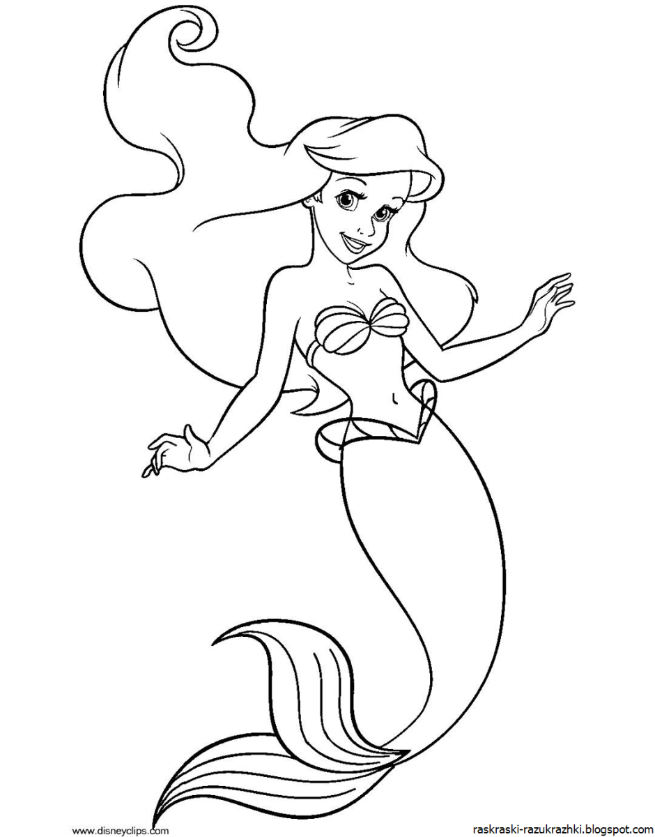 Русалочка Ариель Раскрасска