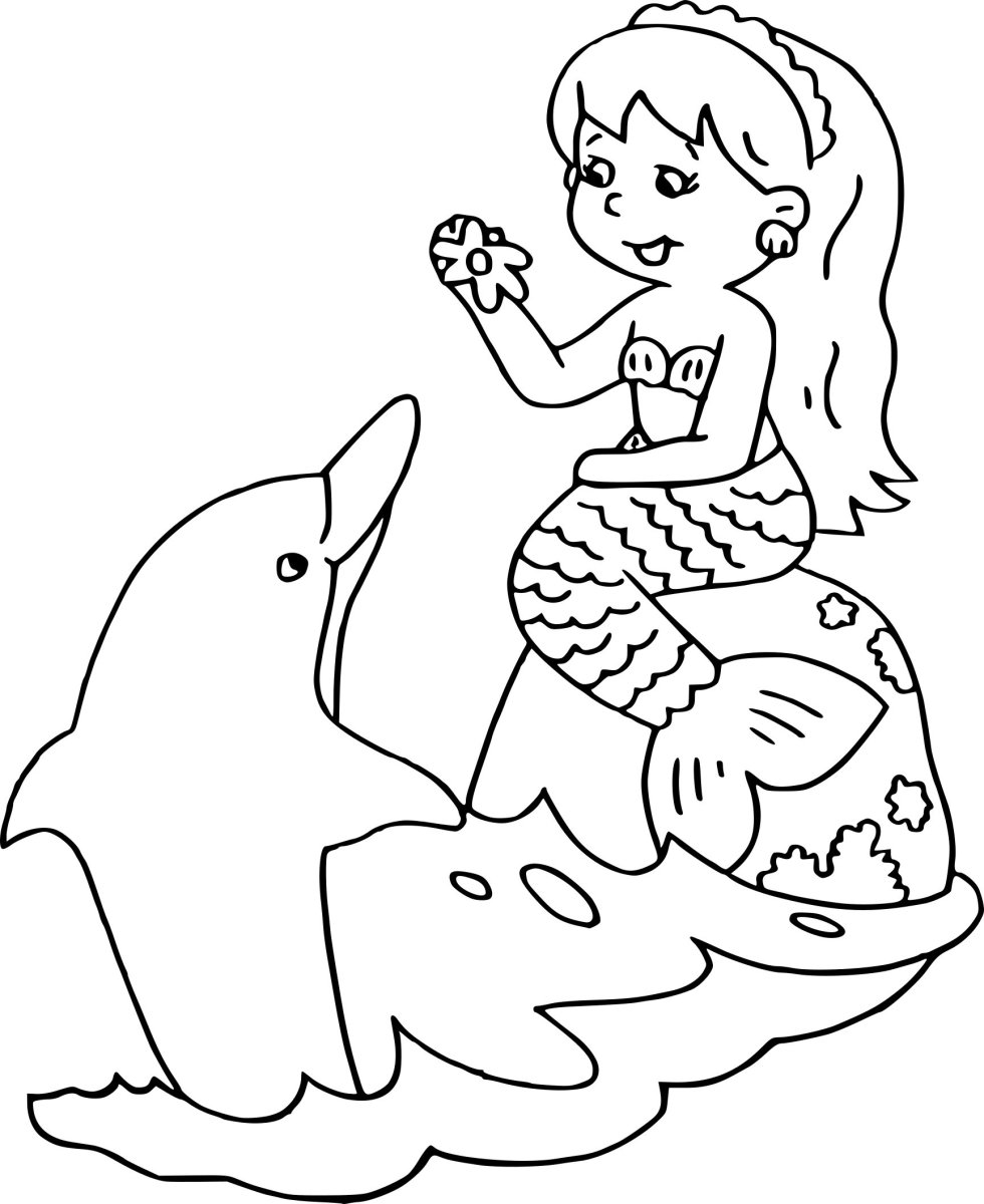 Русалочка Ариэль с дельфином раскраска