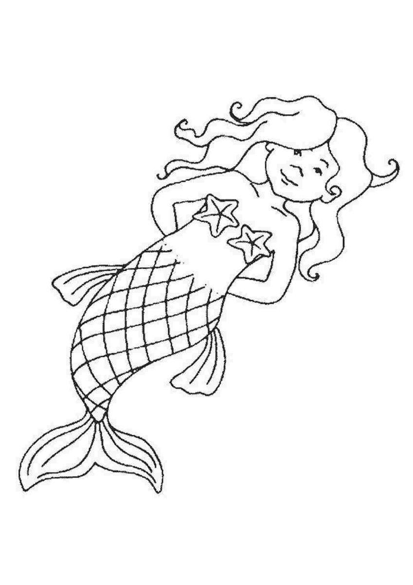 Русалка трафарет раскраска