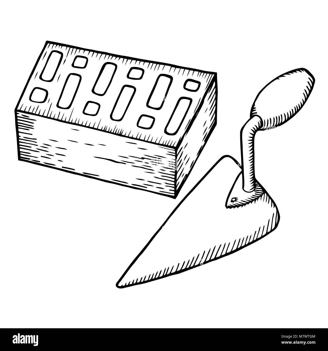 Мастерок и кирпичи вектор