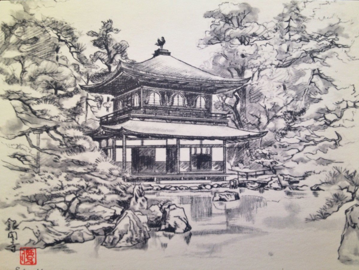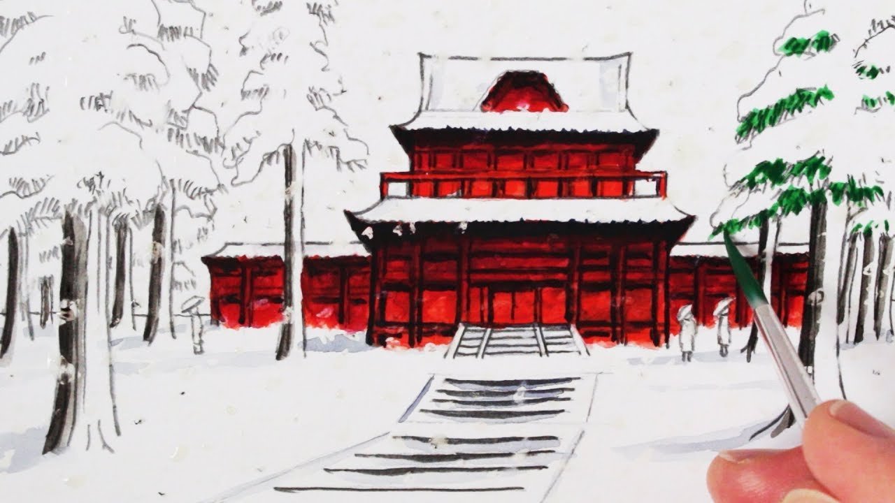 Буддийский храм в Японии рисунки
