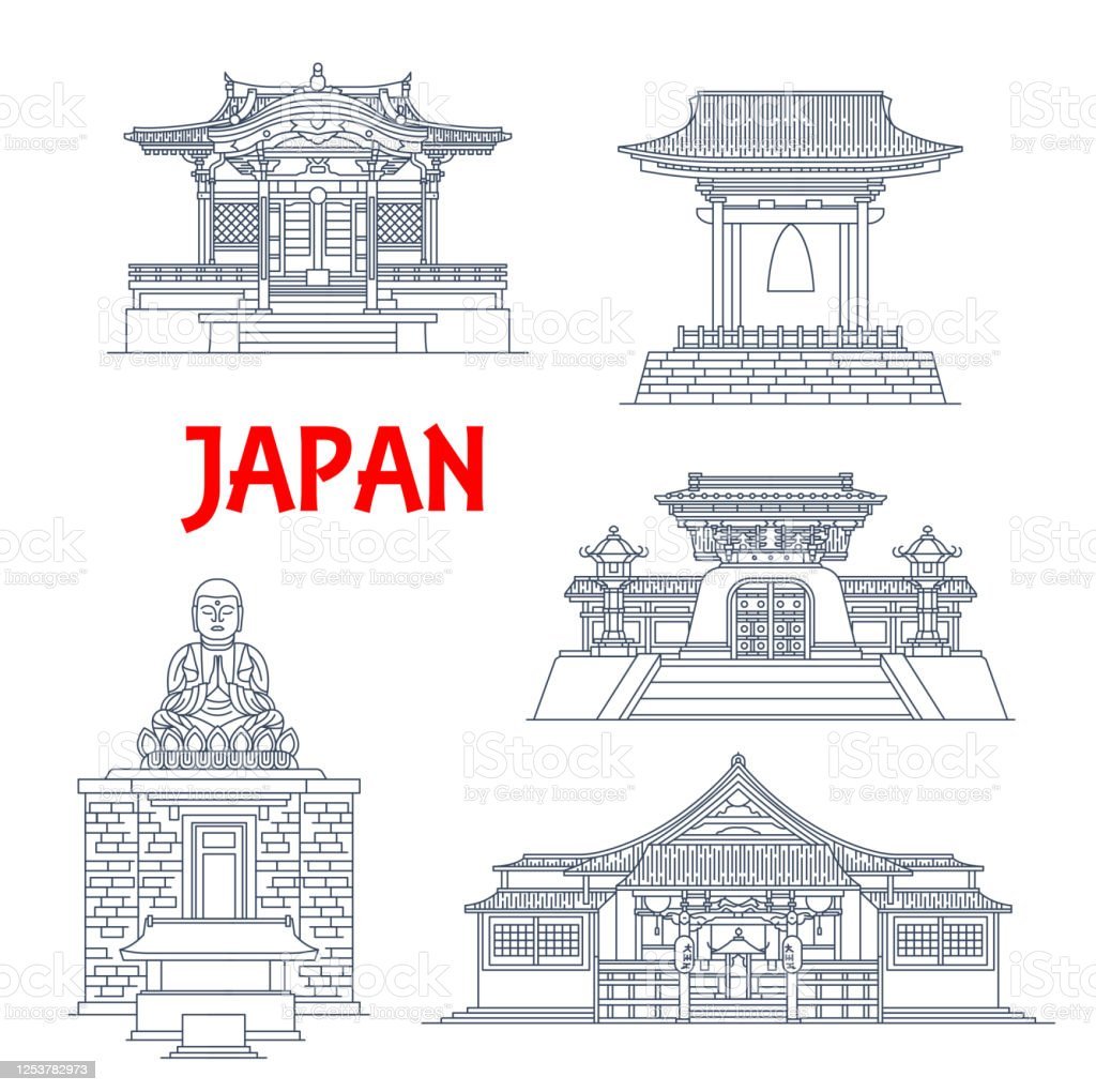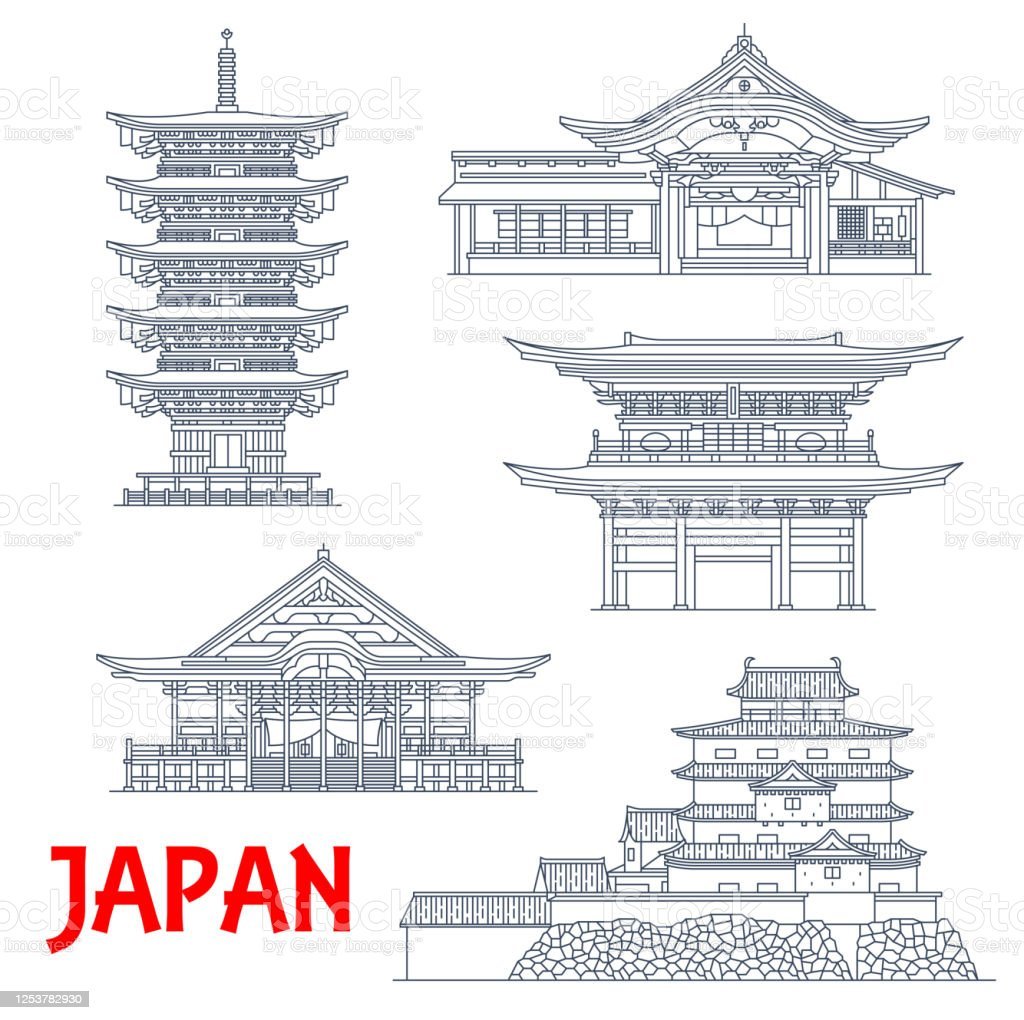Японские пагоды и храмы контуры