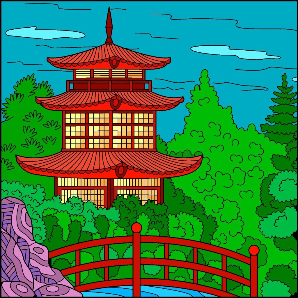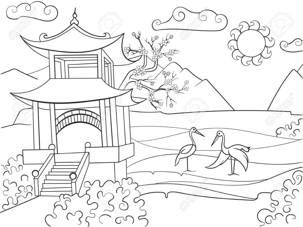 Японский пейзаж раскраска