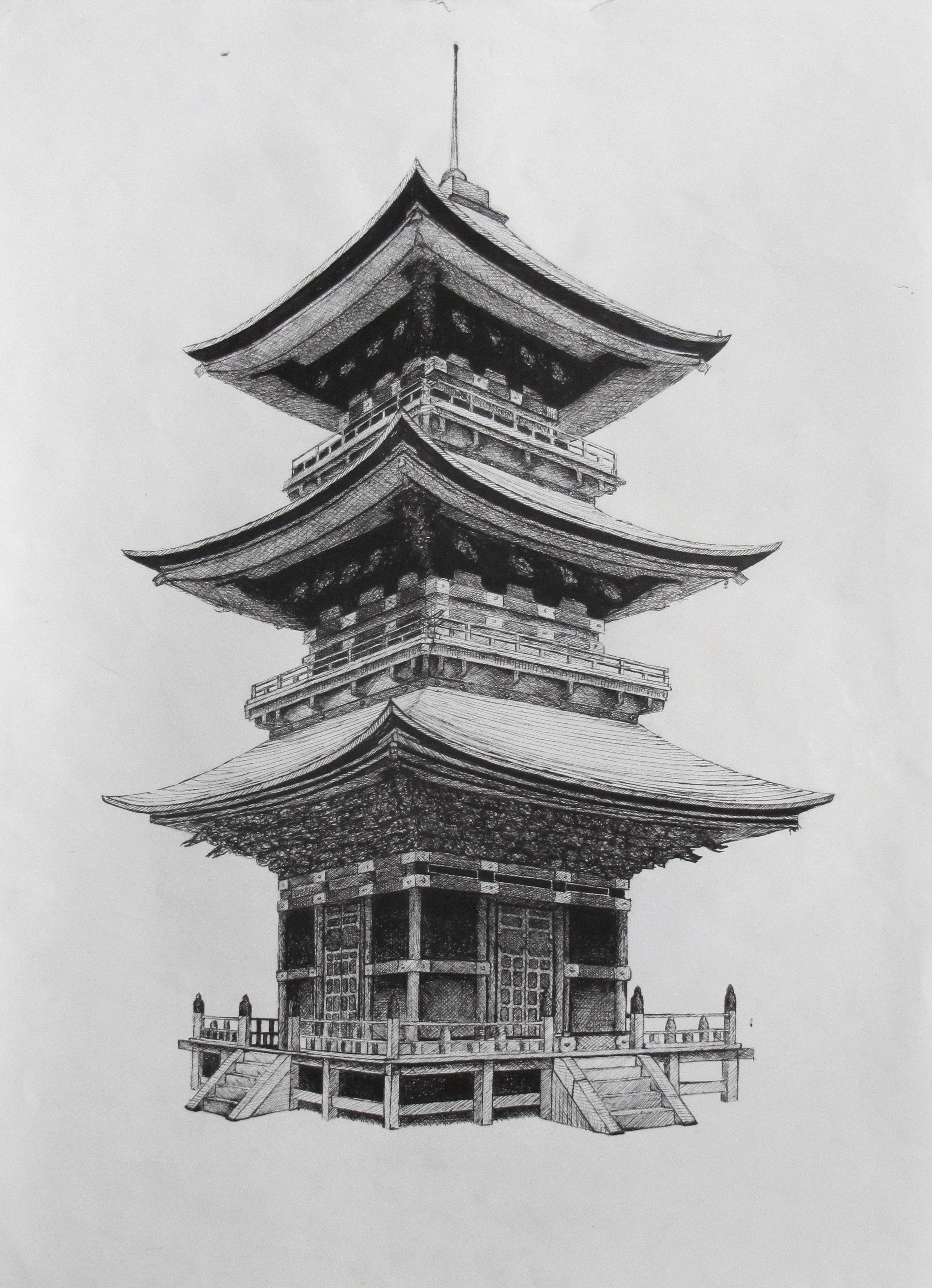 Пагода китайская архитектура карандашом