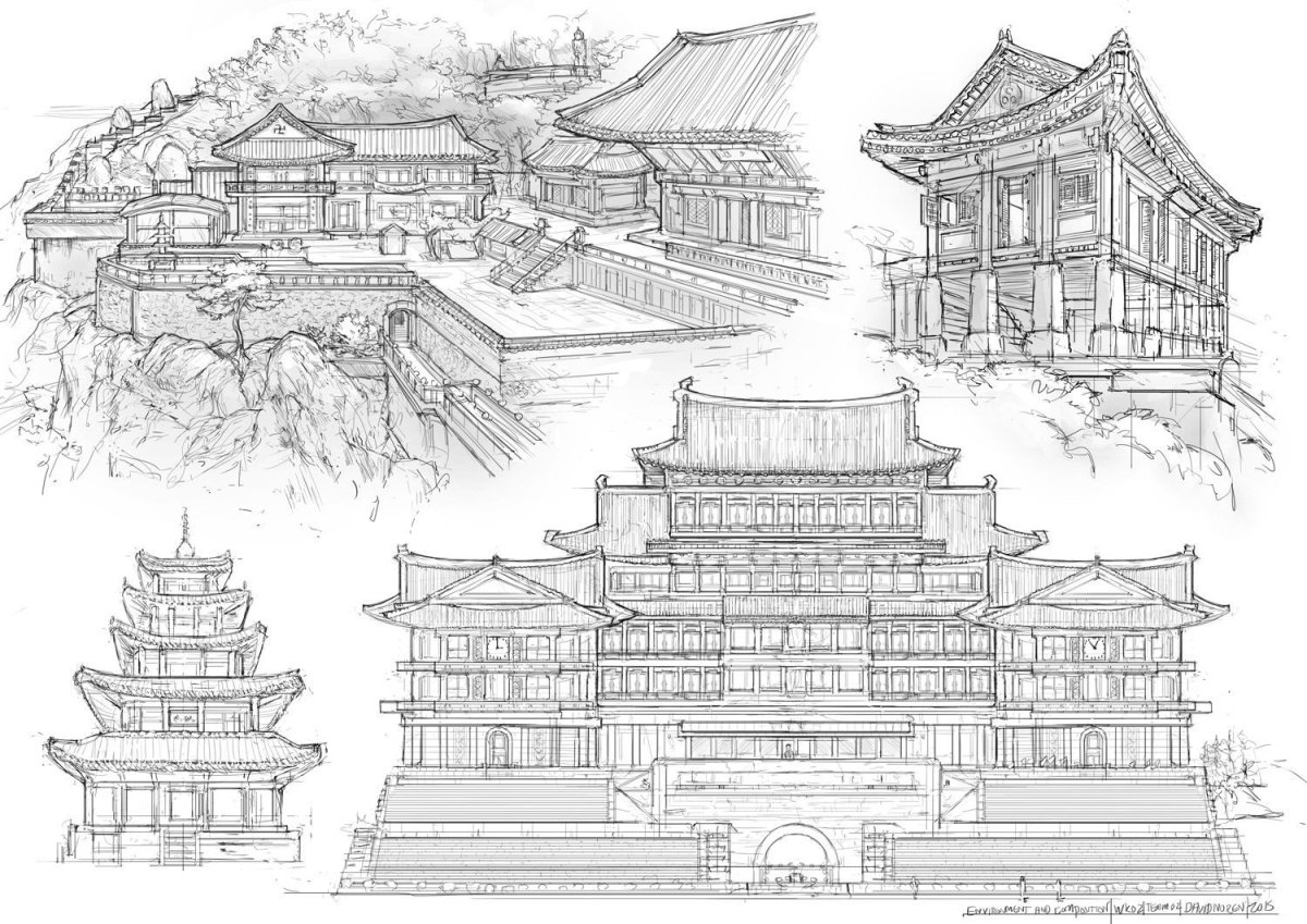 Китайские храмы скетчи